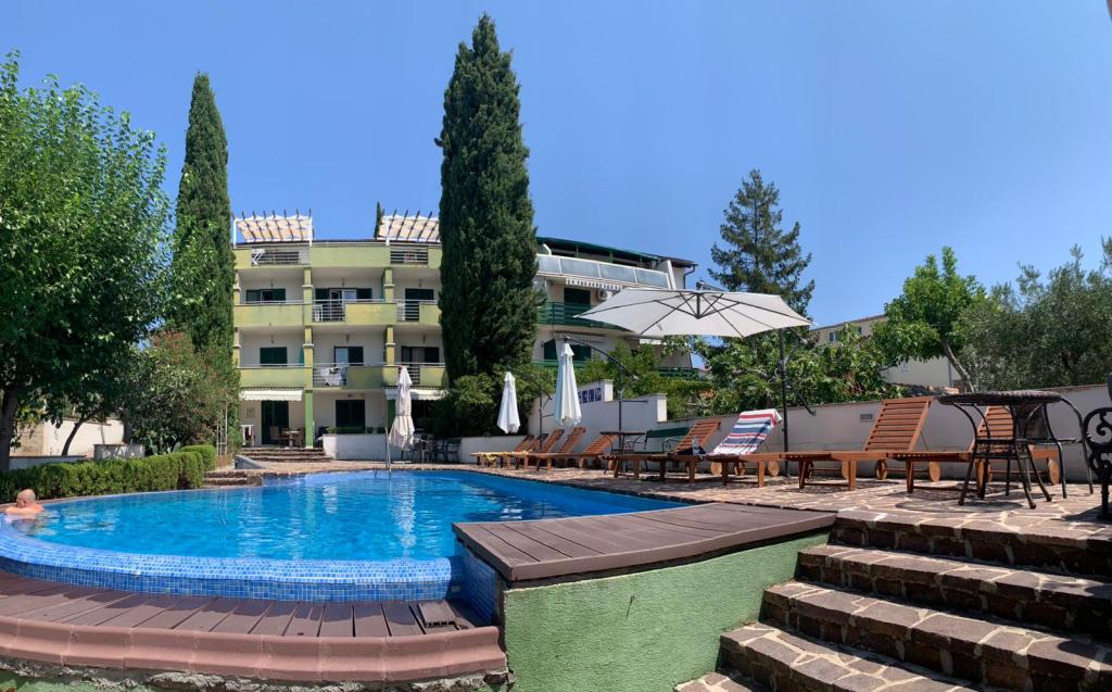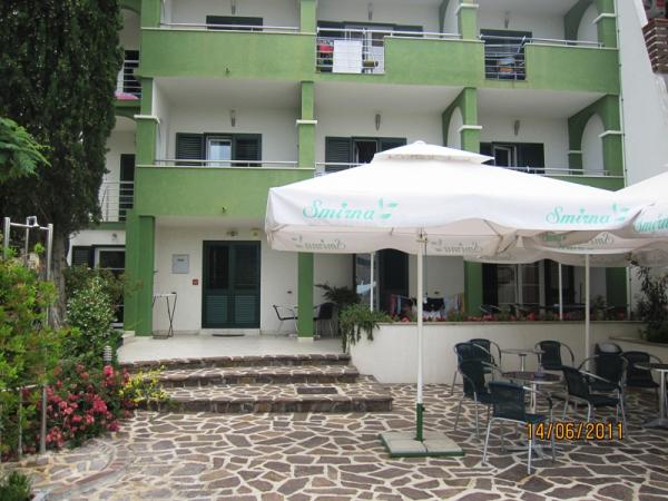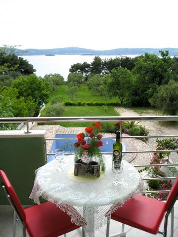 Vila “Smirna” 4*, BAZEN, 1 RED, POGLEDZadarska regija, Biograd na moru - Sveti Filip i Jakov, PREKRASNA PLAŽA, PRIRODNO ZELENILO, 8 RAZLIČITIH TIPOVA APARTMANA, veliko dvorište, ležaljke, roštilj, zelenilo, daju joj posebne čari. Svih 8 RAZLIČITIH TIPOVA apartmana gleda na more i otoke. Nalazi se u prvom redu do mora. Pristup moru su pješčani i šljunčani, a na uređenoj plaži su tuševi i prirodno zelenilo. U dvorištu je roštilj, prostor za druženje, : Kategorizacija 4* Recepcija Vlastiti parking Udaljenost od plaže: 75m Udaljenost od trgovine: 25m Udaljenost od restorana: 50m Udaljenost od centra: 300m Udaljenost od hipermarketa: 2km Udaljenost od Biograda: 2km Udaljenost od Zadra: 25km Slapovi Krke: 30km Kornati: 30km Rafting na Zrmanji Obilazak otoka brodićem Split Međugorje Drubrovnik SADRŽAJI: Bazen (u bazenu je morska voda, dozvoljeno je kupanje bez skakanja od 8-20 h) Dvorište Ležaljke Stolovi i stolice oko bazena Kavomat Najam bicikla Dučan 50 m Kučni red u apartmanim