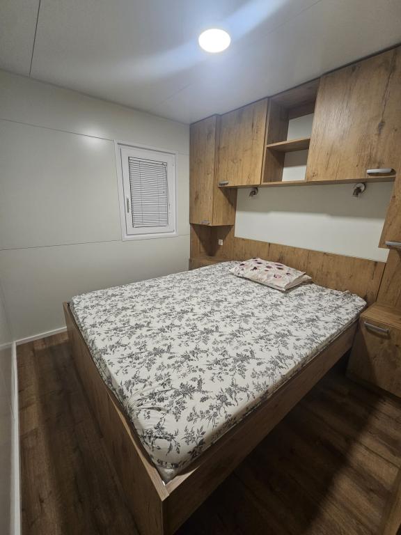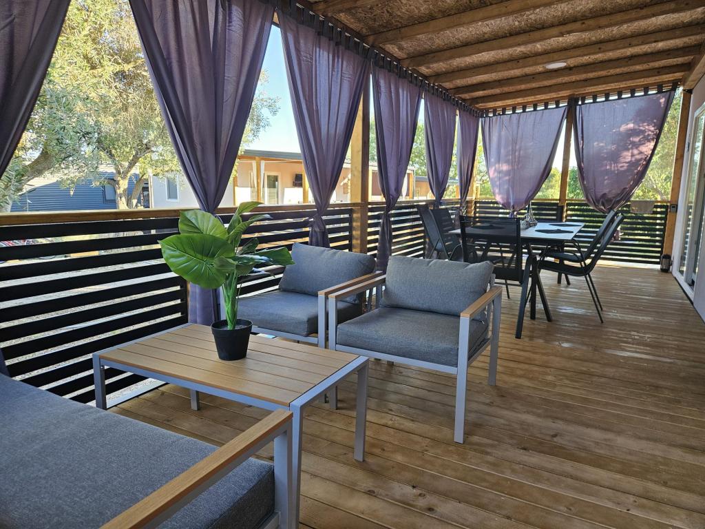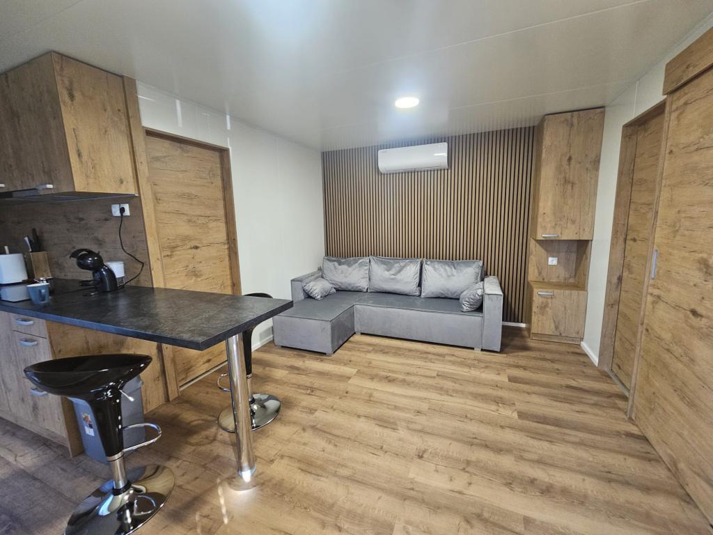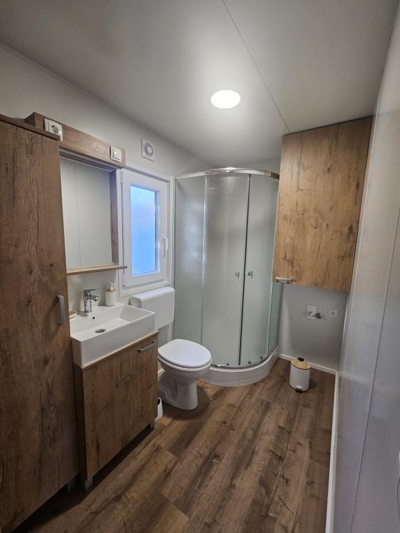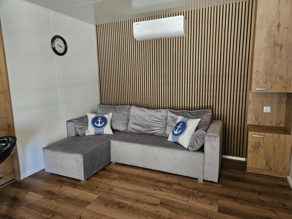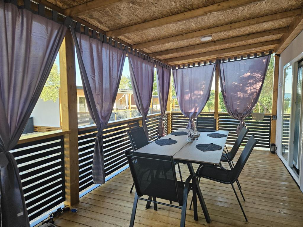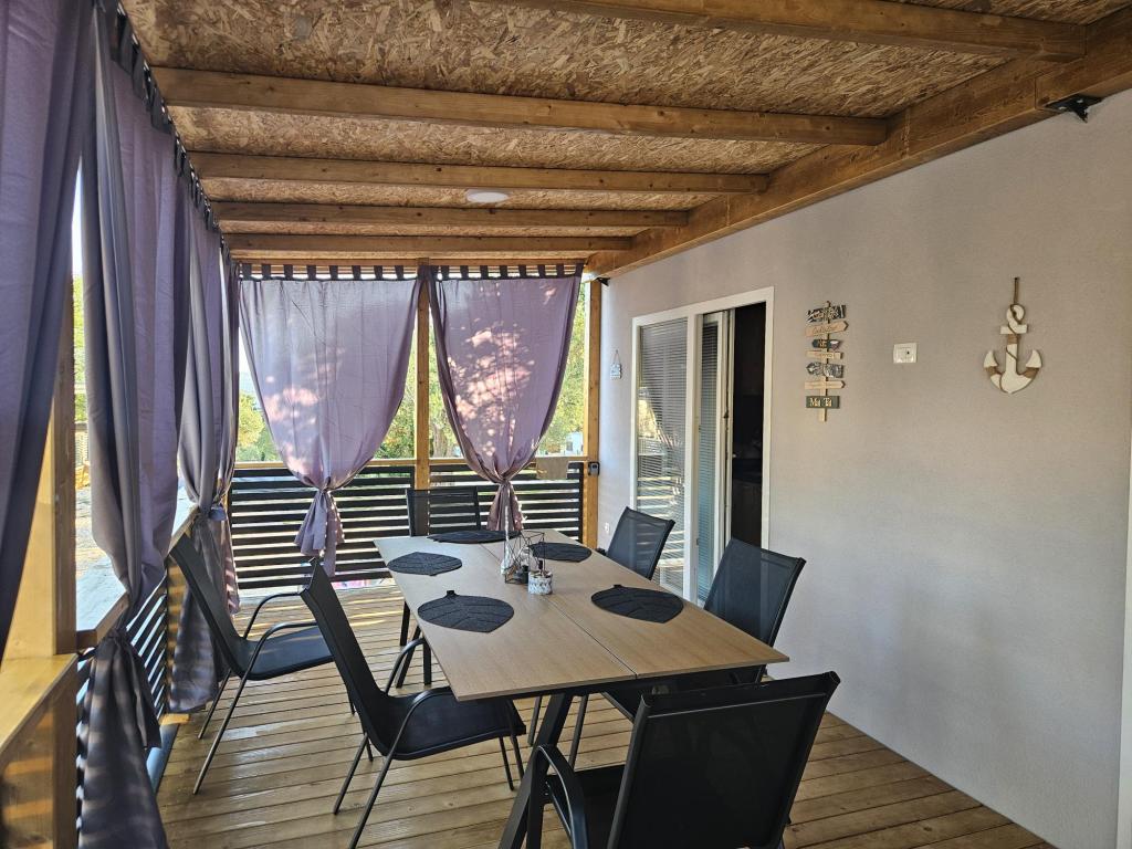 Nova moderna mobilna kućica. Smještena u mirnom i malom mjestu, u samoj blizini predivne plaže. Pogled na more, velika uređena terasa, plinski roštilj za vaš savršeni odmor. Sastoji se od 2 spavaće sobe, kupaonice, kuhinje, dnevnog boravka s kaučem na razvlačenje. Objekt se nalazi na samoj obali, 100 metara do mora, restorana i kafića, a do dućana, pekarne i ribarnice koji se nalaze u centru ima svega 500 metara. Gostima su na raspolaganju TV, internet, klima, plinski roštilj, sušilo za kosu, te besplatni parking.