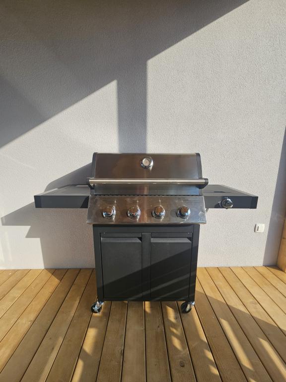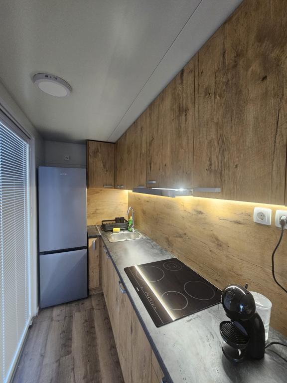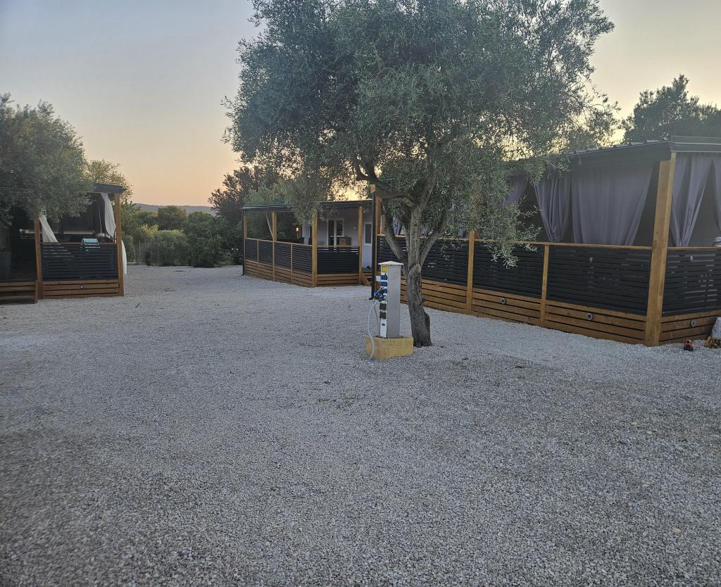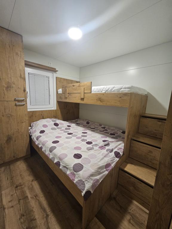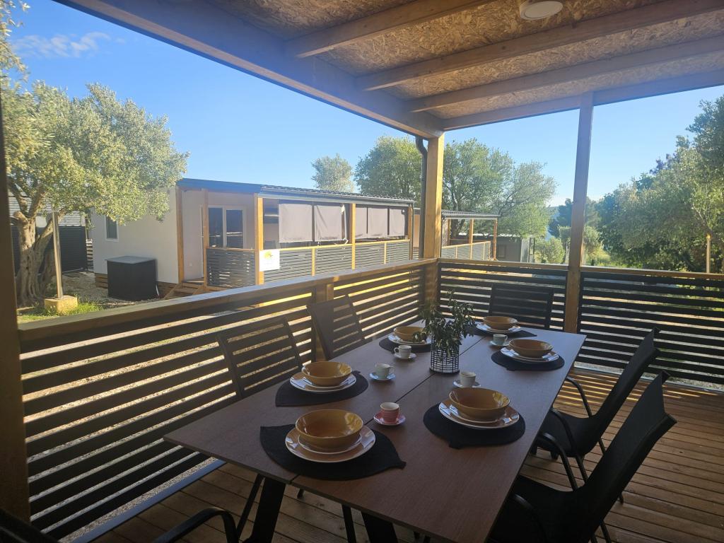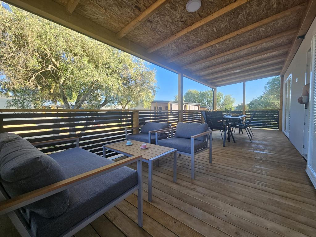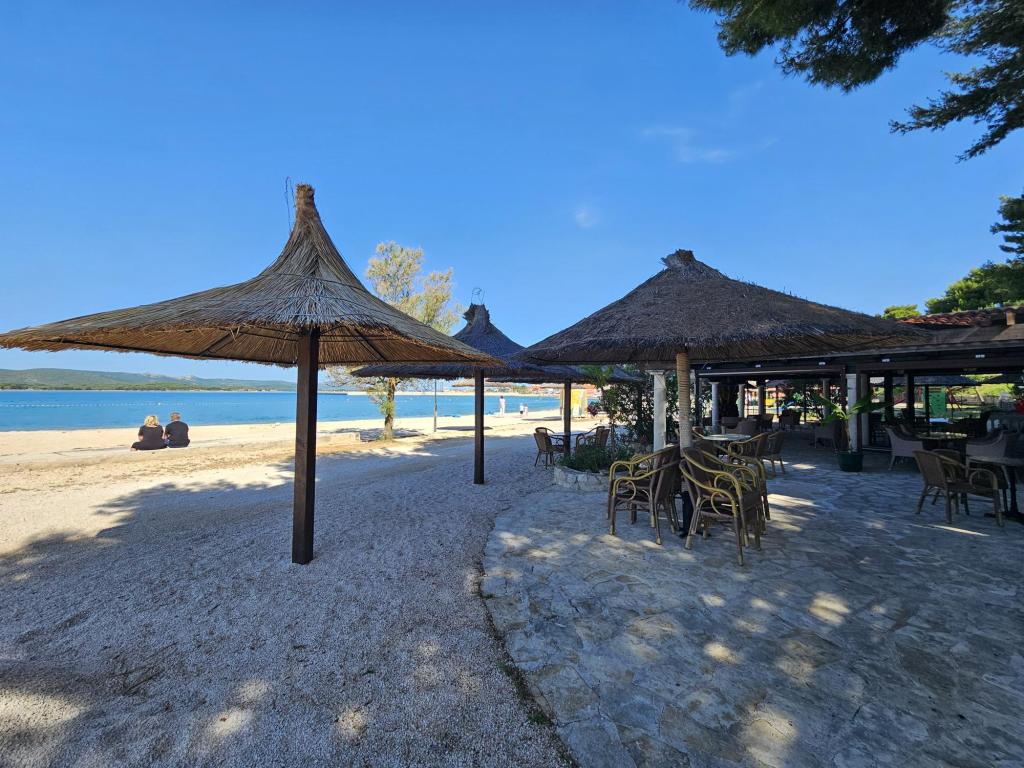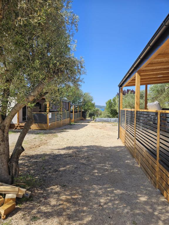 Nova moderna mobilna kućica. Smještena u mirnom i malom mjestu, u samoj blizini predivne plaže. Pogled na more, velika uređena terasa, plinski roštilj za vaš savršeni odmor. Sastoji se od 2 spavaće sobe, kupaonice, kuhinje, dnevnog boravka s kaučem na razvlačenje. Objekt se nalazi na samoj obali, 100 metara do mora, restorana i kafića, a do dućana, pekarne i ribarnice koji se nalaze u centru ima svega 500 metara. Gostima su na raspolaganju TV, internet, klima, plinski roštilj, sušilo za kosu, te besplatni parking.