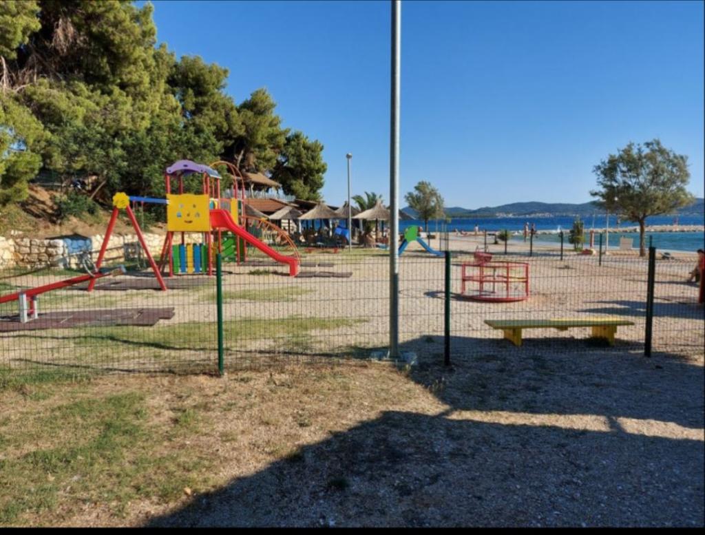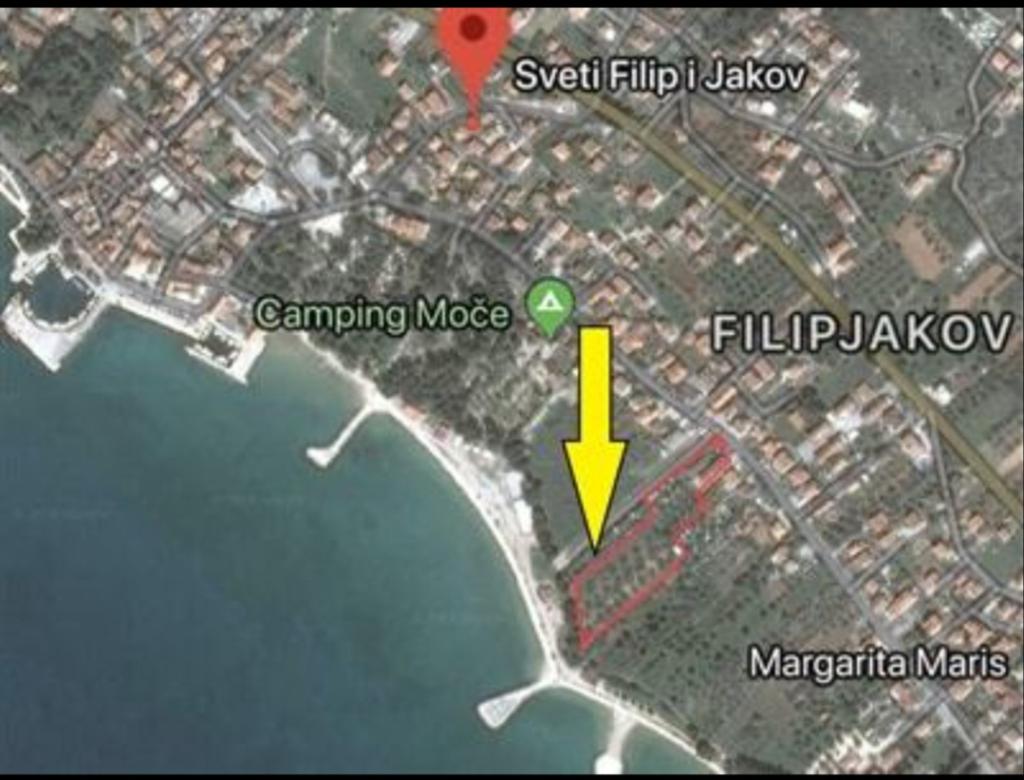 Na plaži se nalazi dječji park sa ljuljačkama i toboganima, aqua park, teren za odbojku na pijesku, nogometno igralište, caffe barovi, restorani, pekarnice te tuševi i kabine za presvlačenje kao i pedaline i kajaci za najam. Plaža je nositelj Plave zastave i počinje u samom centru pa se spušta na jugoistok. Kamp je udaljen 250m od centra mjesta s kojim je povezan novoizgrađenom šetnicom uz more. Sveti Filip i Jakov je atraktivno turističko mjesto zadarske rivijere, oko 3 km sjeverno od Biograda na Moru i oko 20 km južno od Zadra. Nasuprot Sv. Filip i Jakov je otok Pašman. Osim toga, postoji nekoliko manjih otočića u ovom uskom kanalu, koji imaju lijep pogled s kopna i mogu se koristiti kao odredište čarter plovila. Kroz mjesto se proteže stara i autentična dalmatinska riva sa konobama kao i sve ostale turističke usluge - trgovine, restorani, kafići, pekarnice, bankomati, ljekarna, pošta, iznajmljivanje plovila.
