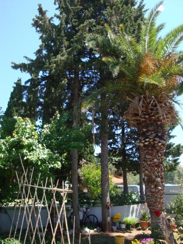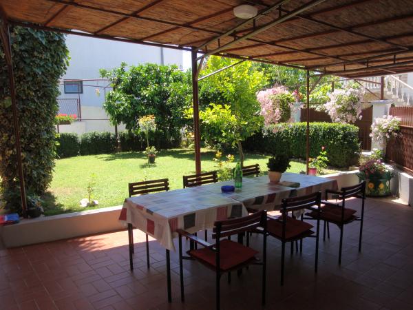 Ispred kuće se nalazi velika terasa u hladovini.