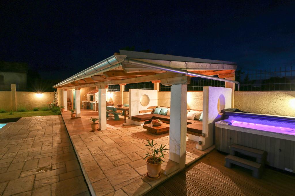 Turistička pristojba je uključena u cijenu.Vila Atria Divina nudi i sadržaje: bazen veličine 60m2, jacuzzi, saunu, teniski teren, vanjski kamin za roštilj, vanjski lounge prostor, bočalište, dječje igralište. Sve navedeno uključeno u cijenu.