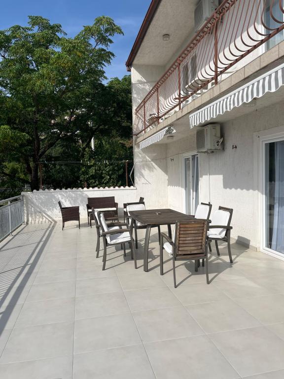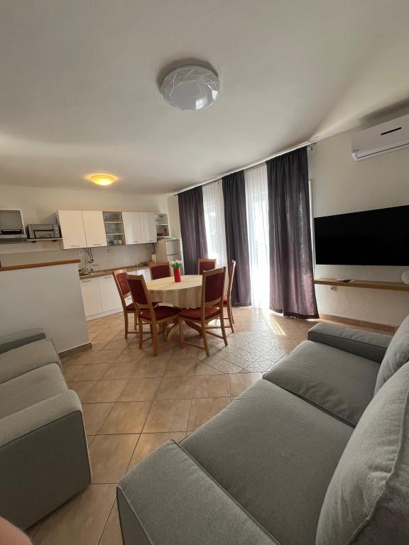 Dobrodošli u naše udobne i prostrane apartmane smještene u mirnom i ugodnom malom mjestu Sveti Juraj, u blizini Senja. Naši apartmani vam nude miran boravak u blizini prekrasnog Jadranskog mora. Udaljenost do plaže i centra mjesta je 150 metara. U svaki apartman možemo smjestiti do 7 osoba. Svaki apartman ima 3 spavaće sobe sa vlastitim kupatilima, dnevni boravak i potpuno opremljenu kuhinju. Apartmani su klimatizirani. Budući da ćete provesti puno vremena vani, naš dom nudi veliki prostor za odmor s prikladnim vrtnim namještajem. Ako želite pripremiti opuštajuću večeru vani tu je i prostor s opremom za pripremanje roštilja. U dvorištu se nalazi veliki privatni parking i vaši automobili su sigurni. Naši apartmani su idealni za miran obiteljski odmor sa djecom ili grupom prijatelja.