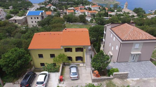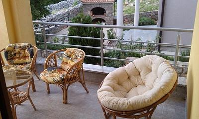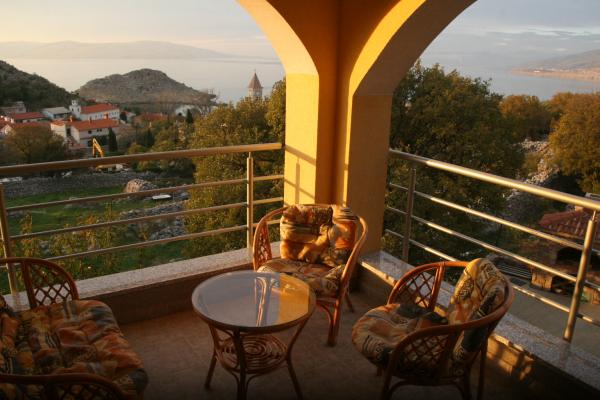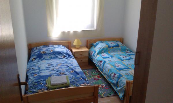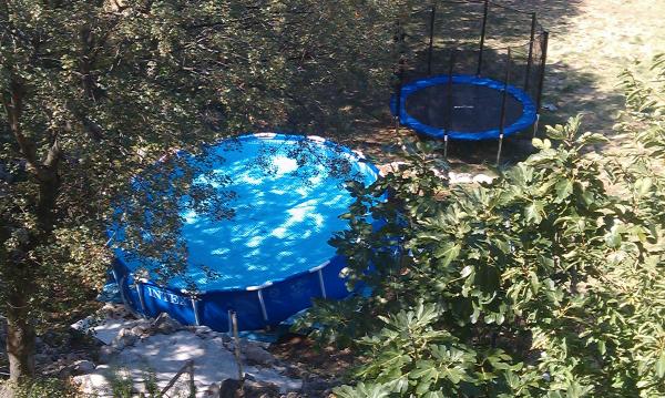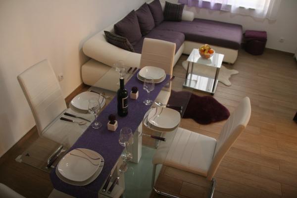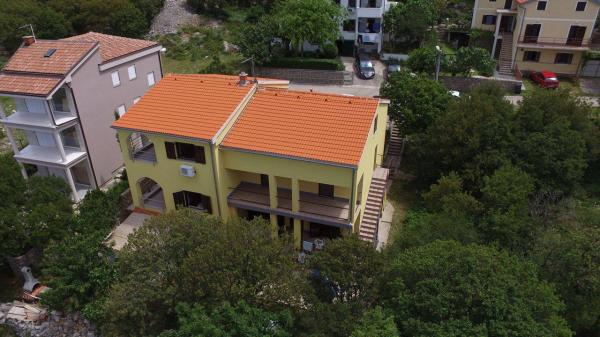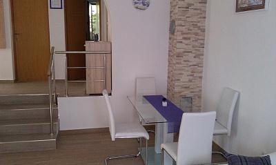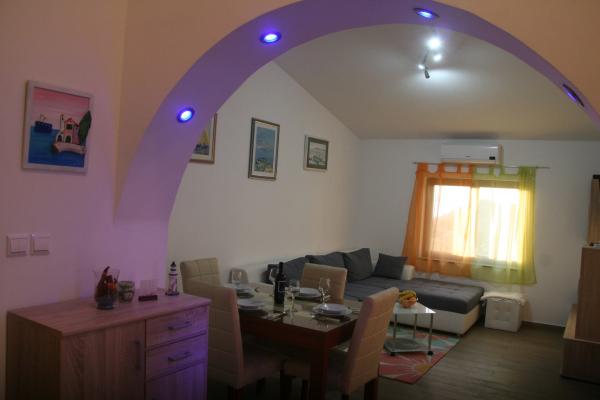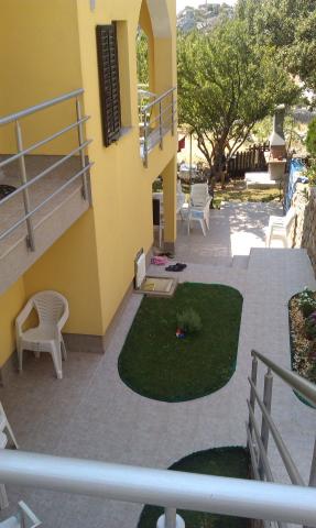 Apartmani se nalaze u potpuno mirnom dijelu mjesta, 5 minuta hoda do centra, 7 min do plaže. U potpunoj su prirodi, idealno za miran odmor i dječju igru. Svaki apartman moderno je uređen, nalazi se na posebnom katu i ima vlastiti ulaz. Svaki ima 2 sobe, 1 kupaonicu, vrhunski opremljenu kuhinju, veliku dnevnu sobu sa sofom za dodatne 2 osobe i terasu/ balkon sa prekrasnim pogledom na more. U vrtu se nalazi montažni bazen i trampolin - besplatno korištenje. Apartmani su opremljeni sa klimom, naplaćuje se 5€ po danu korištenja. Dostupan je vanjski roštilj. Parking je besplatan. Perilica rublja je također dostupna, prvo pranje je besplatno, svako sljedeće se naplaćuje 5€. Domaćin je dostupan za vrijeme Vašeg boravka. Pomoć sa roštiljem i pekom je također dostupna na zahtjev.