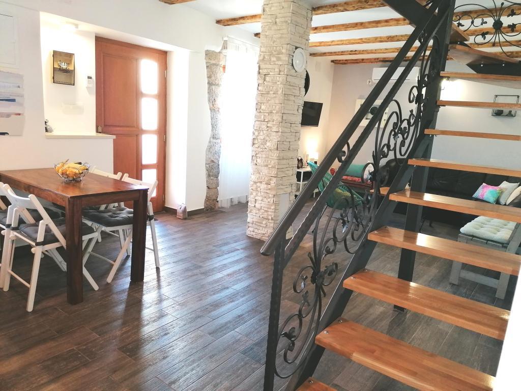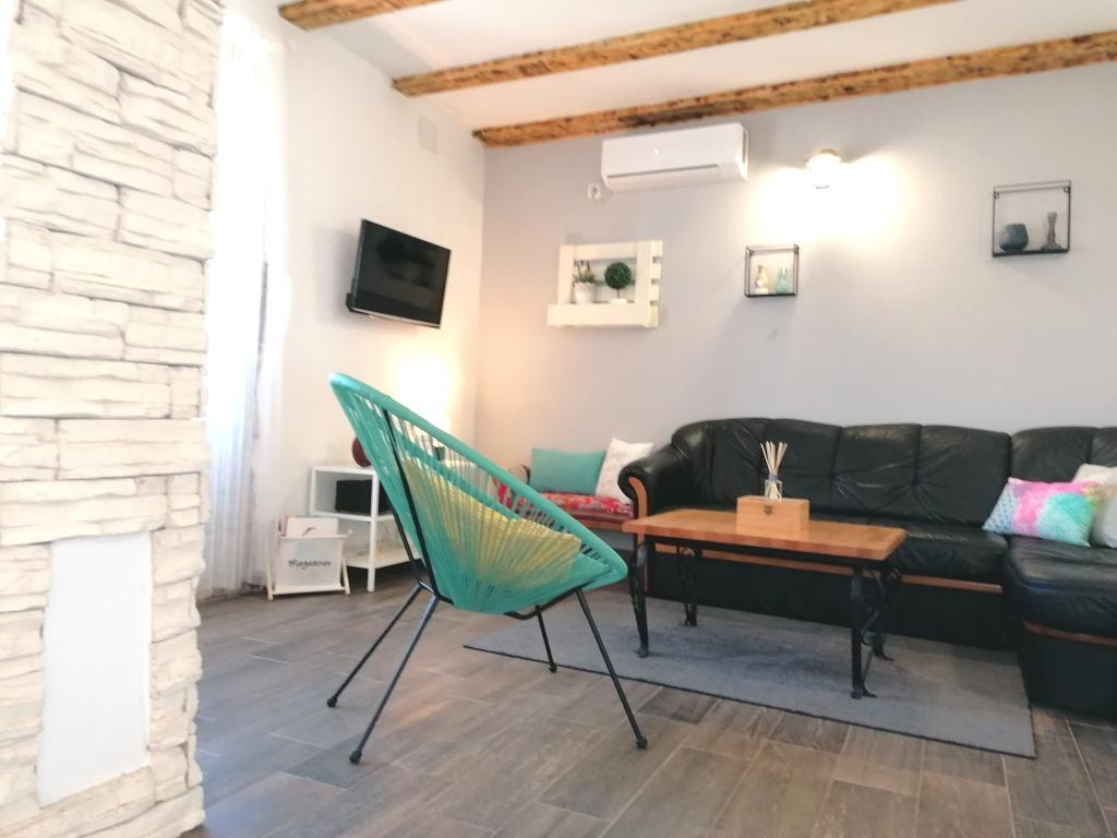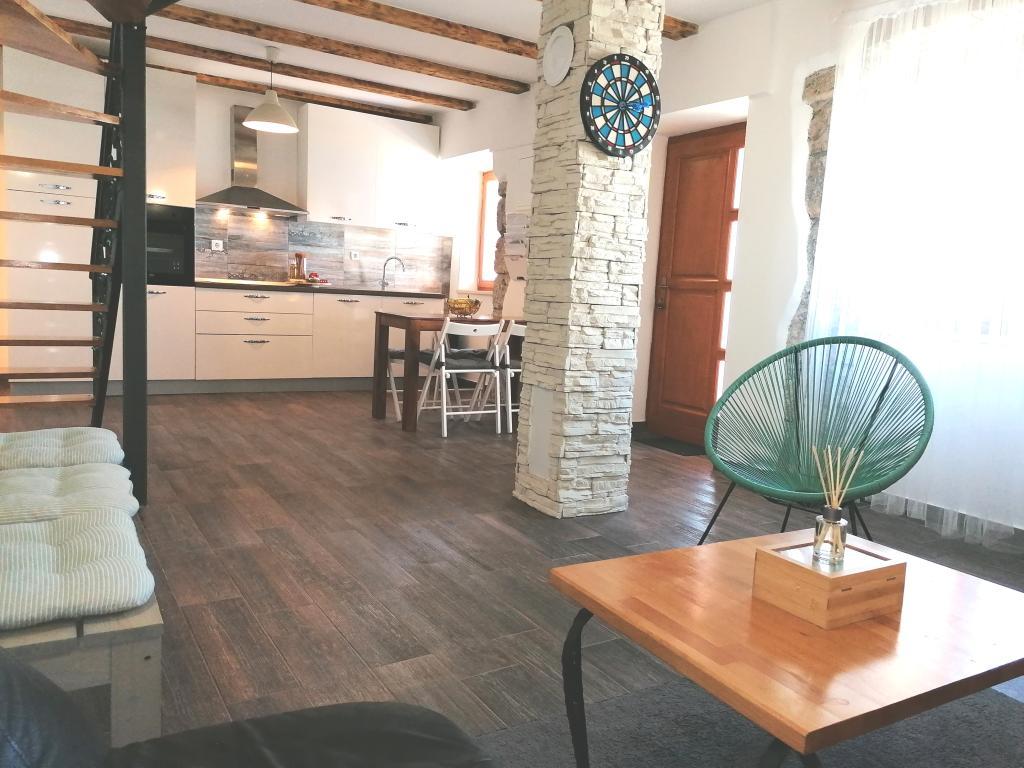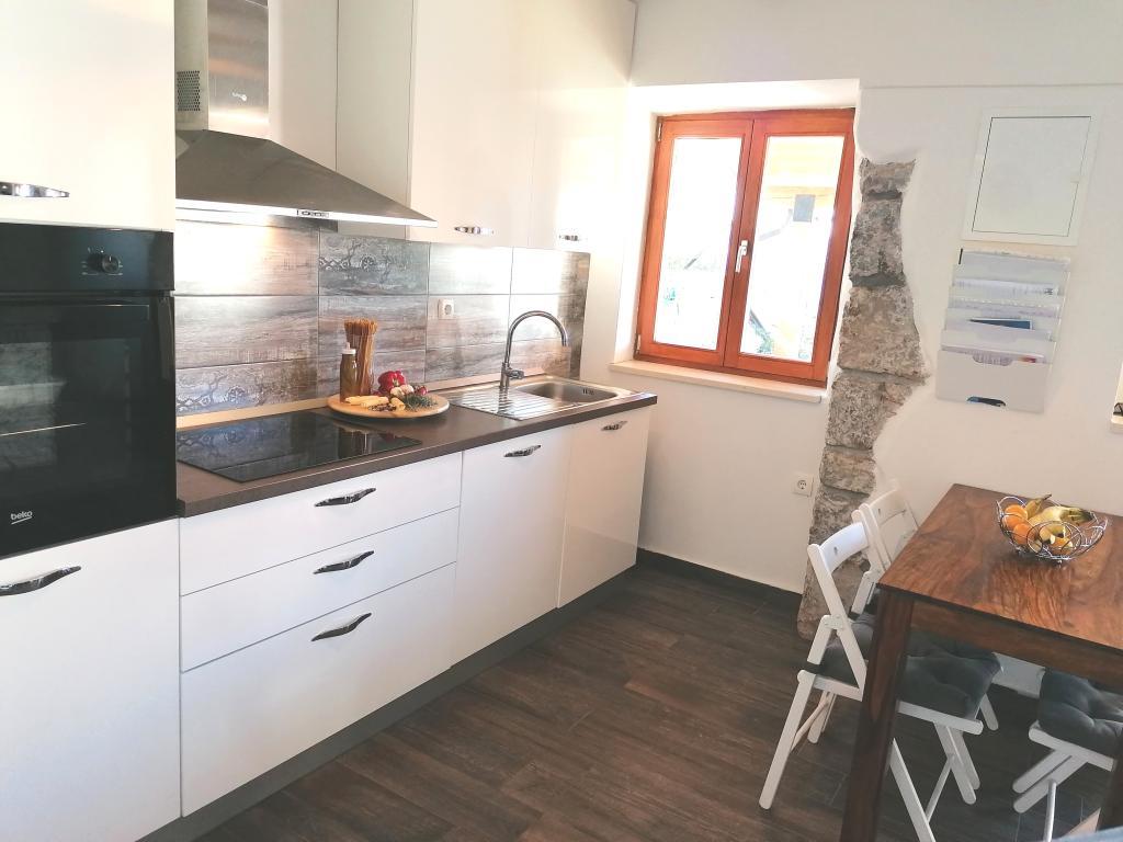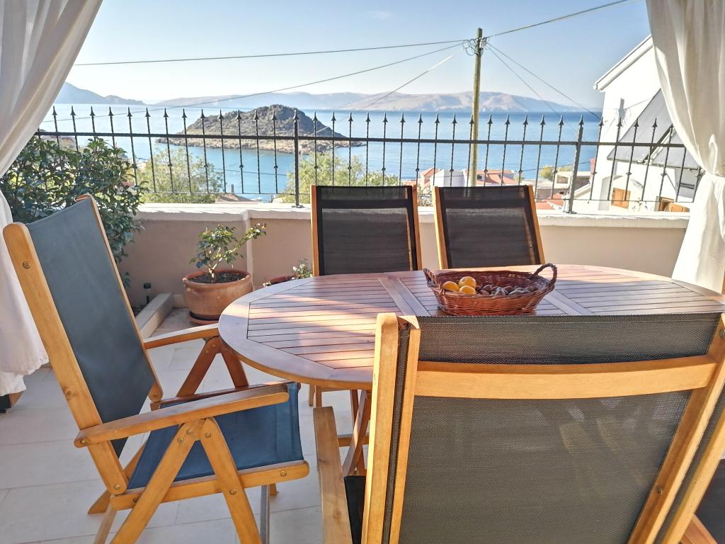 Autentična primorska kuća za odmor uređena u stilu i s puno pažnje te opremljena svim suvremenim uređajima. Kuća je u potpunosti adaptirana 2018.g. Gostima je na raspolaganju cijela kuća za odmor koja ima 2 spavaće sobe s bračnim krevetima i dodatan pomoćni ležaj, 1 veliku kupaonicu, kuhinju s dnevnim boravkom te prostranu djelomično natkrivenu terasu s koje se pruža očaravajući pogled na kristalno čisto more i susjedne otoke (Krk i Prvić). U dnevnom boravku nalazi se kutna garnitura na razvlačenje. U objektu može boraviti max 6 osoba. Kuća je udaljena svega par minuta hoda od centra mjesta, plaže i svih ostalih sadržaja (trgovina, restoran, pošta, bankomat...).
