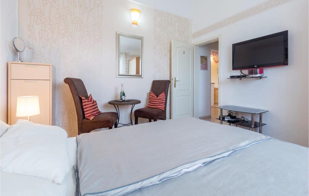 Turistička pristojba nije uključena u cijenu.Sadržaji 2 TVSatelitska antena Internet (besplatan, bezican) Prostorije: Kuhinja: topl. i hladna voda Dnevni-kuhinja Kupaonica br. 1 Toalet: topla i hladna voda, Tus Kupaonica br. 2 (Samo u ID 65069) Toalet: topla i hladna voda, Tus Spavaca soba br. 1 Bracni krevet (2 mjesto/a) Spavaca soba br. 2 Bracni krevet (2 mjesto/a) (Samo u ID 65069) Oprema elektricne ploce: 2 ploče Hladnjak Napa Pretinac za zamrzavanje: 10 l Aparat za kavu Mikrovalna pecnica Energija/grijanje Potpuna toplinska izolacija Klima uredaj h/c: 2 kom. Okućnica Prirodna parcela Ogradena parcela Vrtni namjestaj Gratis parking na parceli: 1 mjesto/azidani rostilj Broj ležaljki: 4 Terasa ili slicno Natkrivena terasa