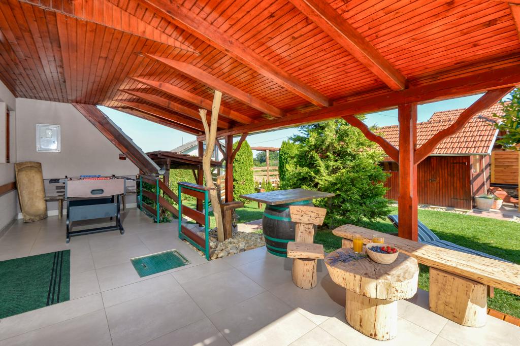 Idealan odmor od užurbane svakodnevnice Kuća za odmor Holiday Home Dika u Kapelščaku sastoji se dvije kuće, jedna pokraj druge. Možemo smjesiti do osam osoba u četiri spavače sobe, na tri bračna velika kreveta i dva kreveta posebno. Dvije kuhinje unutarnje i jedna vanjska omogućuje spremanje fine hrane. Nudimo veliki vanjski roštilj na prostanoj terasi spremnoj za obiteljska druženja. Sauna upotpunjuje zadržavanje u kući, a u šarmantno uređenom dvorištu je jacuzzi bazen s grijanom vodom. Tu je i infinity bazen sa kojeg se pruža predivan pogled u prirodu. Ljeti možete guštati uz vanjski kamin, a zimi se grijati ložeći u kalijevoj peći ili tek okrenuti termostat i uključiti grijanje. U podrumu kuće pronaći ćete butelje pomno odabranih vina međimurskih vinara, uz mogućnost degustiranja božanske kapljice našega podneblja. Uz kuću se nalaze dvorište, voćnjak i šuma. Ugodnom šetnjom kroz predivnu prirodu gornjeg Međimurja za 25 minuta stižete do LifeClass Termi Sveti Martin.