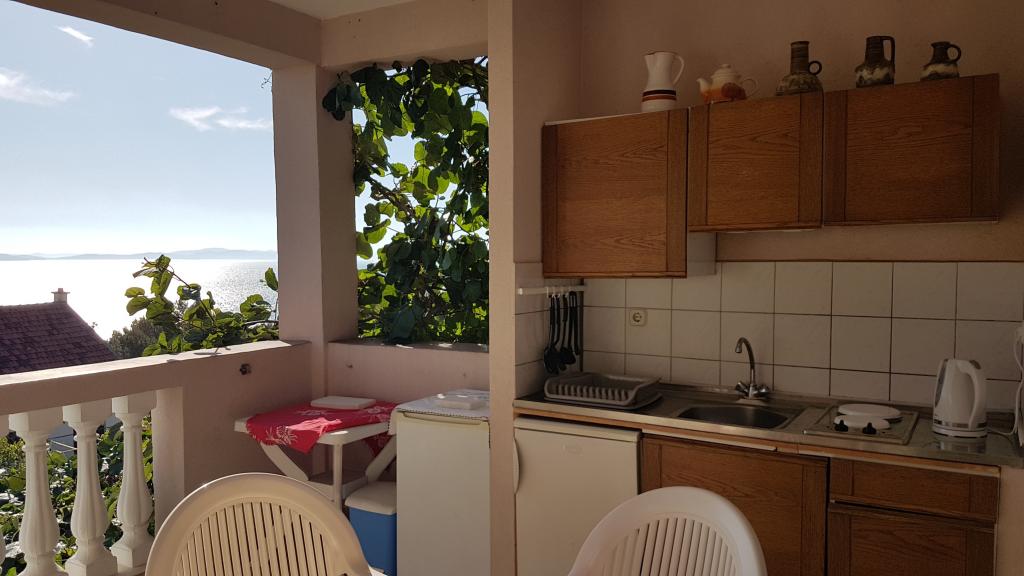 Kuća s pogledom na more, udaljena 5 min. hoda do plaže, s osiguranim parkirnim mjestom. Uz plažu restoran, kafić, pekara, dućan udaljen 15 min. hodanja. Do Biograda 10 min. vožnje autom ili do Zadra 20 min. vožnje autom.