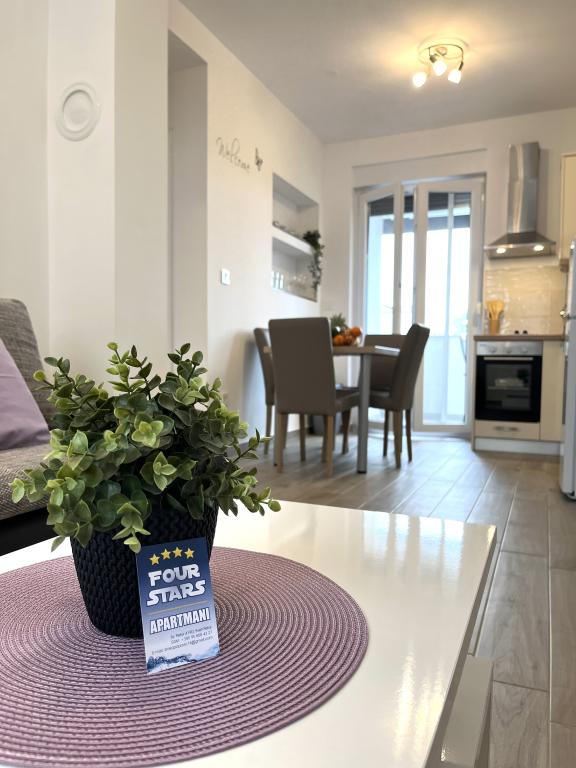 Novi luksuzni Four Stars apartmani nalaze se u Svetom Petru na moru, između Biograda na moru i Zadra. Apartmani su smješteni prvi red do mora, 40 metara od šljunčane plaže. Svi su apartmani klimatizirani, zvučno izolirani. Na svakom prozoru te balkonskim vratima se nalaze komarnici. Ulazna vrata apartmana su protupožarna-protuprovalna, LCD TV ravnog ekrana sa satelitskim programima, besplatan WI-FI. Sa svojih balkona možete uživati u predivnom pogledu na more i na otok ljubavi -Galešnjak. Ponuda uključuje besplatan privatni parking, te iza kuće roštilj kao i jacuzzi hidromasažni bazen koji daje potpuni sadržaj našem objektu. Ukratko, Four Stars apartmani Vam nude savršen odmor te bijeg od užurbanog života. Ako ste željni adrenalinske zabave na raspolaganju imate zabavni Dalmaland Fun & Water Park u Biogradu na moru (11 km). U blizini je grad Zadar (17 km ) koji je pun povijesnih sadržaja. Eto, na Vama je odluka, a mi Vas srdačno očekujemo :)