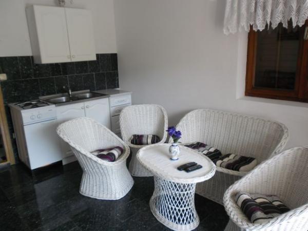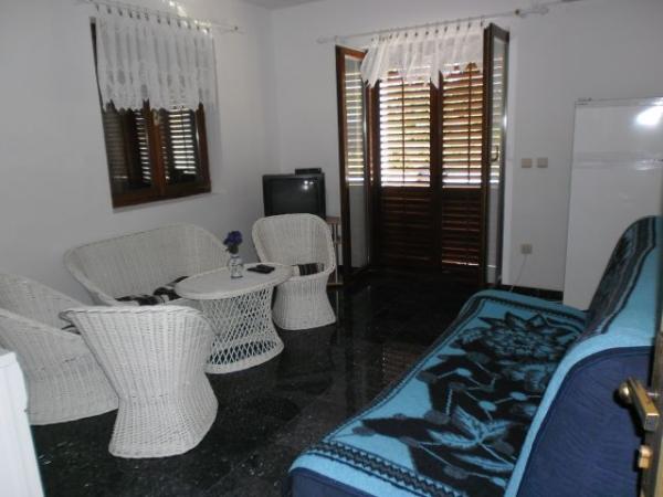 Apartman (za 6 osoba) – sastoje se od pet prostorija i velike terase. Od toga su dvije sobe s bračnim ležajevima, jedna soba s dva odvojena ležaja, dnevni boravak s kuhinjom i pomoćnim ležajem te kupaonica s tušem. App sadrže TV, ST,klimu, hladnjak s većom ledenicom. App je površine 70 metara kvadratnih. Apartman (za 4 osobe) – sastoje se od tri prostorije,velike terase i balkona. Od toga je jedna soba s bračnim ležajem i jedna soba s dva odvojena ležaja, kupaonica s tušem te dnevni boravak s kuhinjom i pomoćnim ležajem. App sadrže TV, ST, klimu, hladnjak s većom ledenicom. App je površine 50 metara kvadratnih. Nalazimo se na kraju mjesta gdje nije tolika gužva na plaži. Boravci odvojeni od soba. Prekrasan pogled na otoke i more,grill,parking more 70 metara AKCIJA APP A4 (a) termin APP A6 (b) termin termin