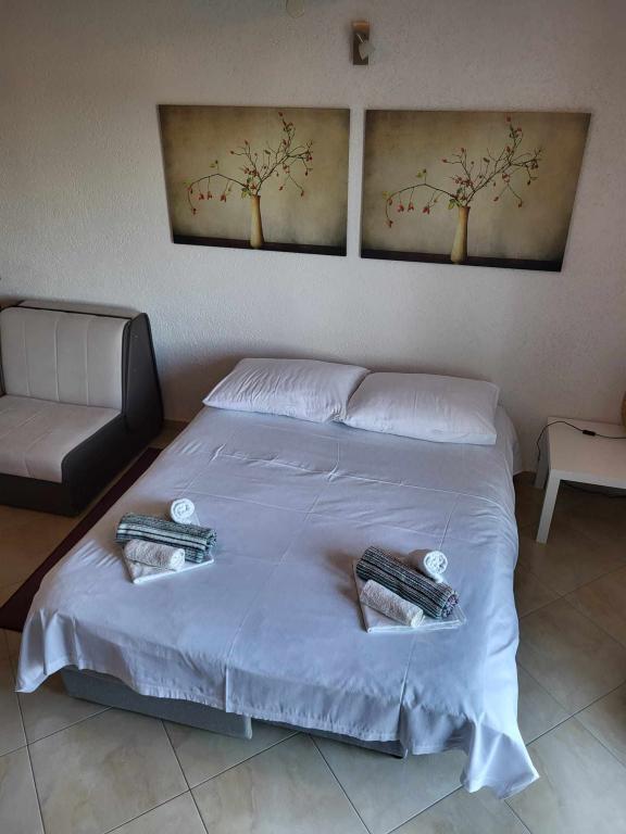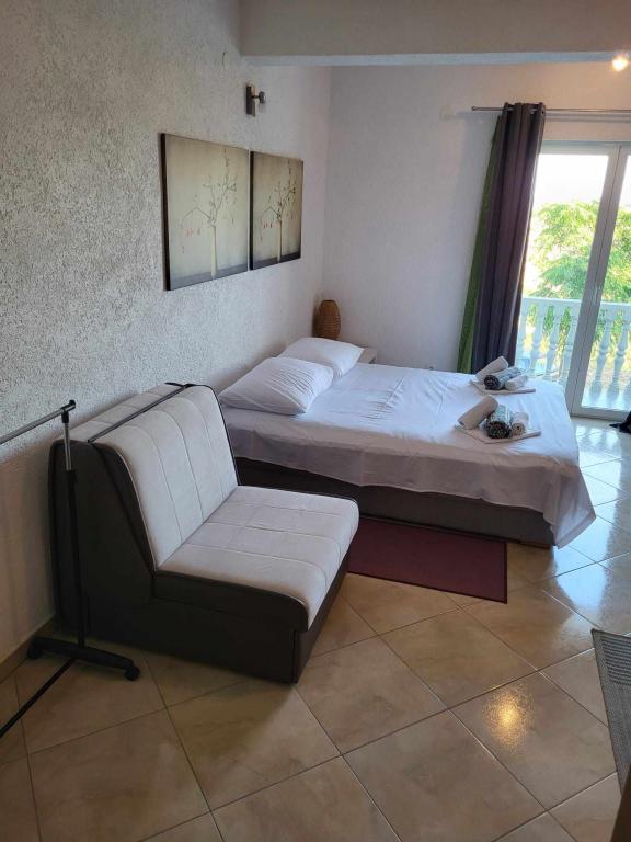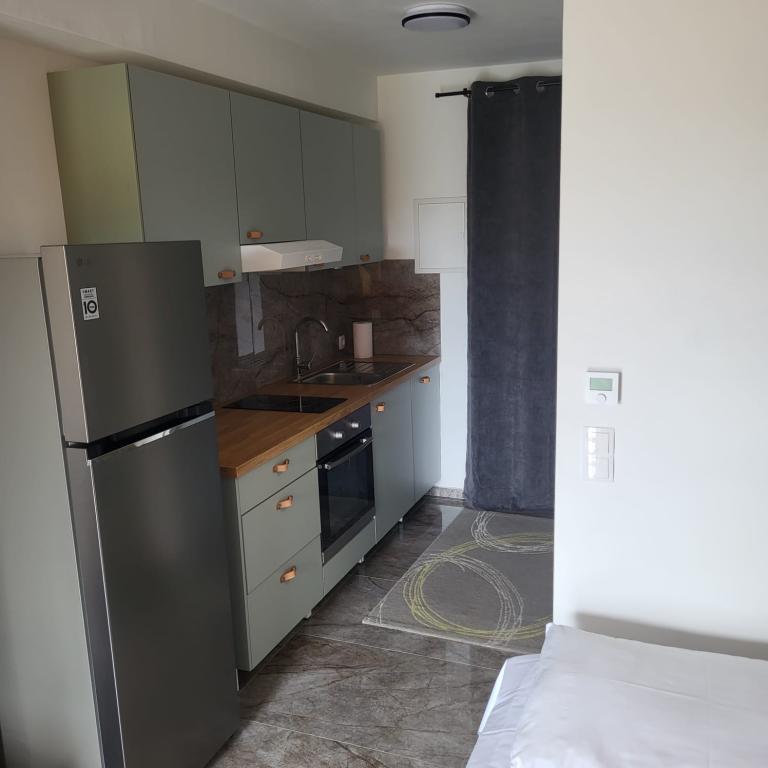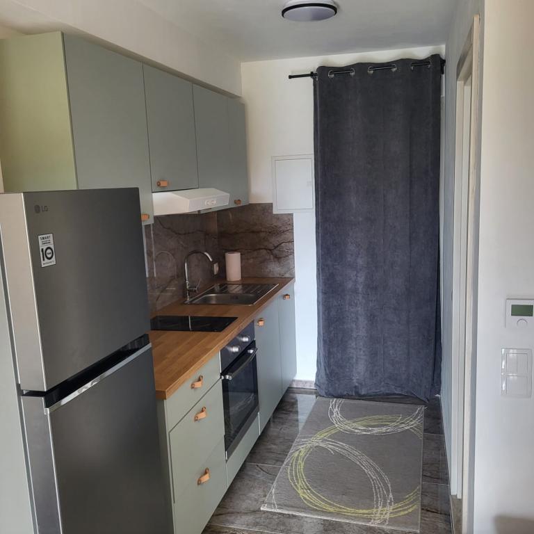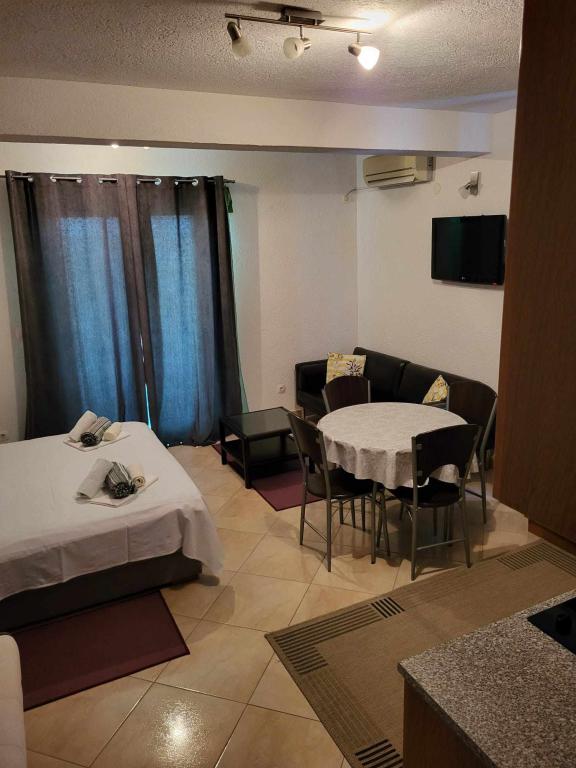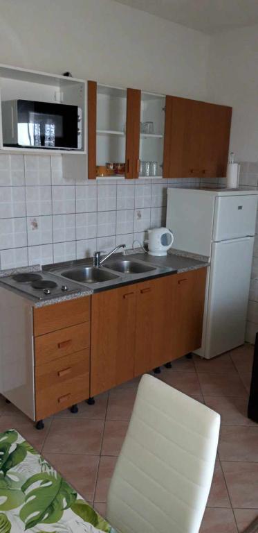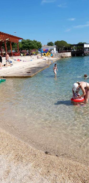 Postovani gosti, nasi apartmani su kompletno i suvremeno opremljeni, klimatizirani u mirnom turistickom naselju. Apartmani su udaljeni 400 metara od mora/plaze. Na plazi se nalazi Restoran, bar, market, pekara, voce&povrce, odbojkasko igraliste. Apartmani se nalaze na prvom katu kuce.