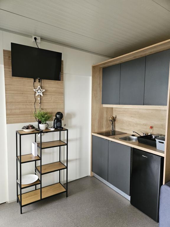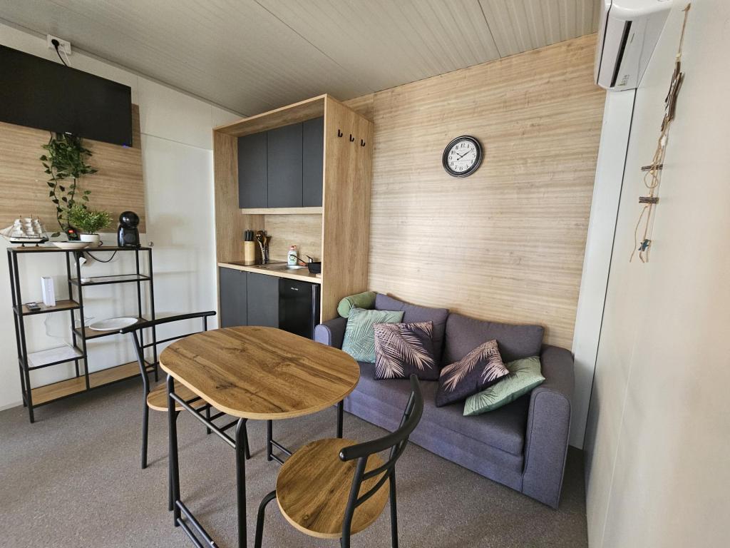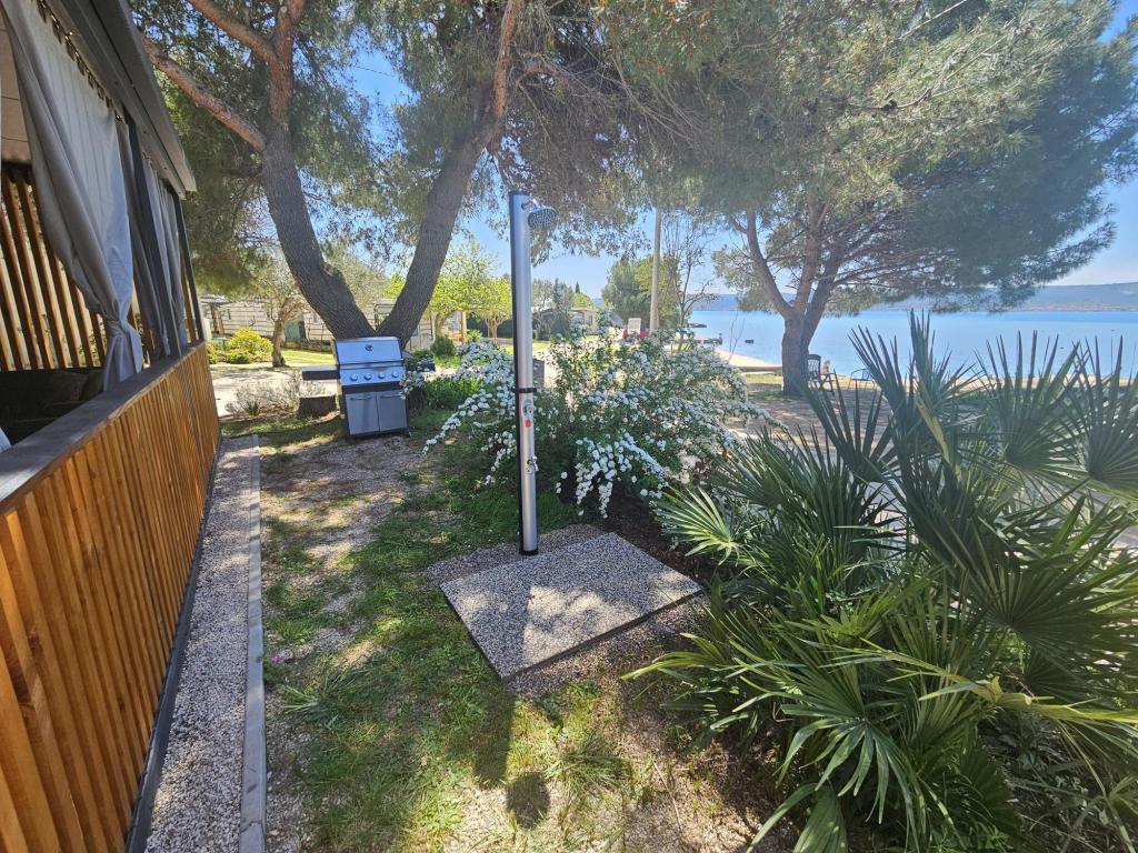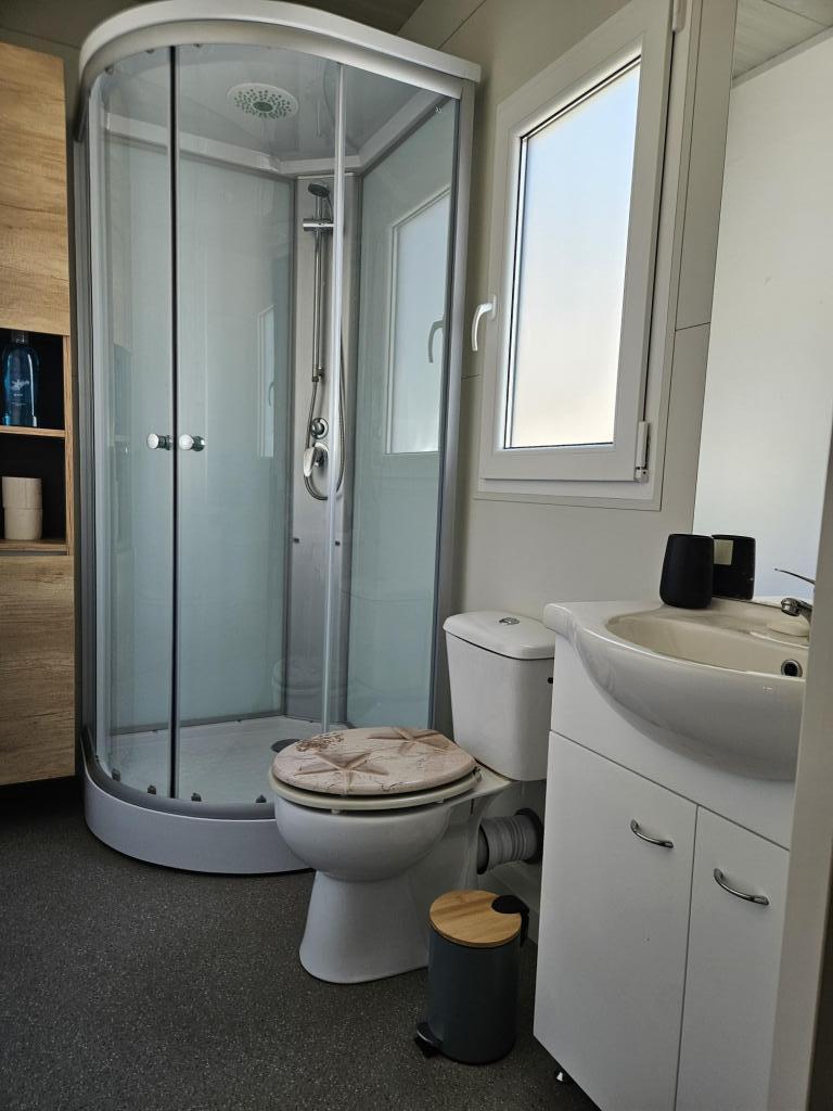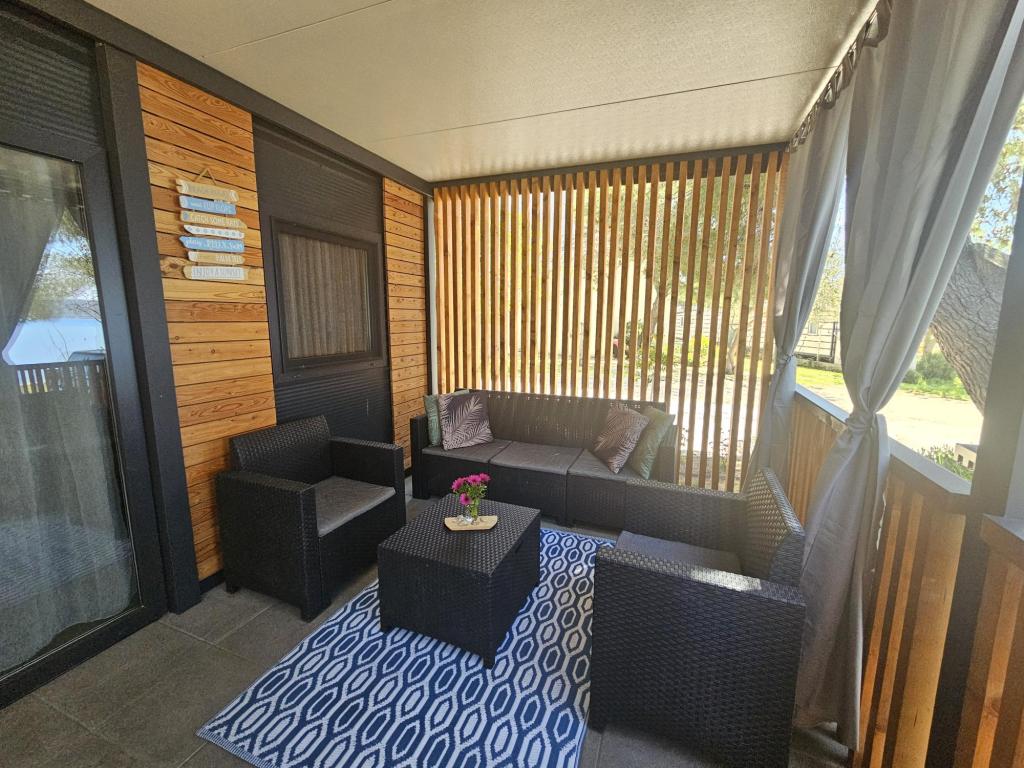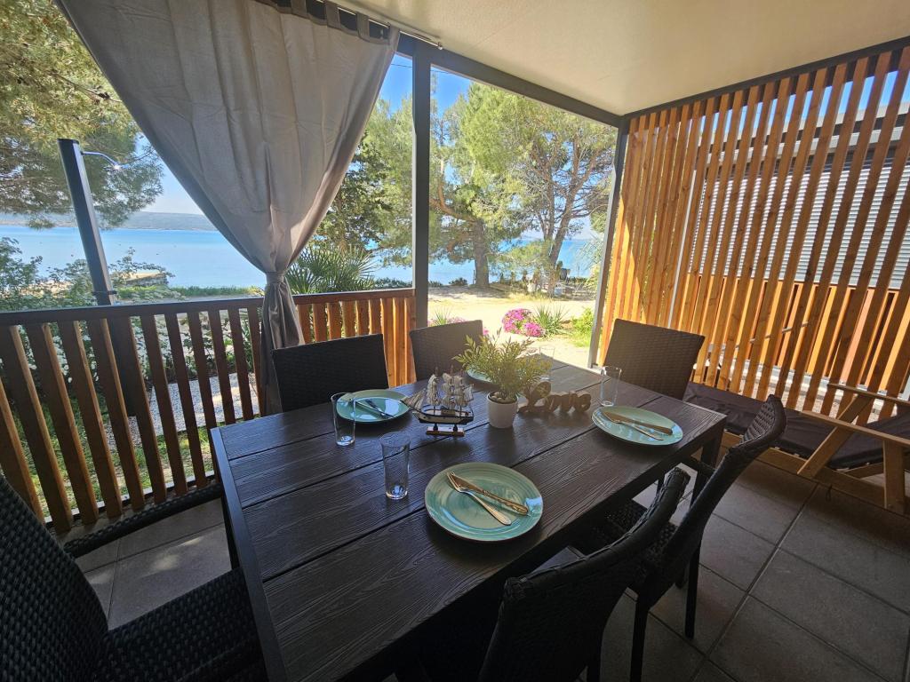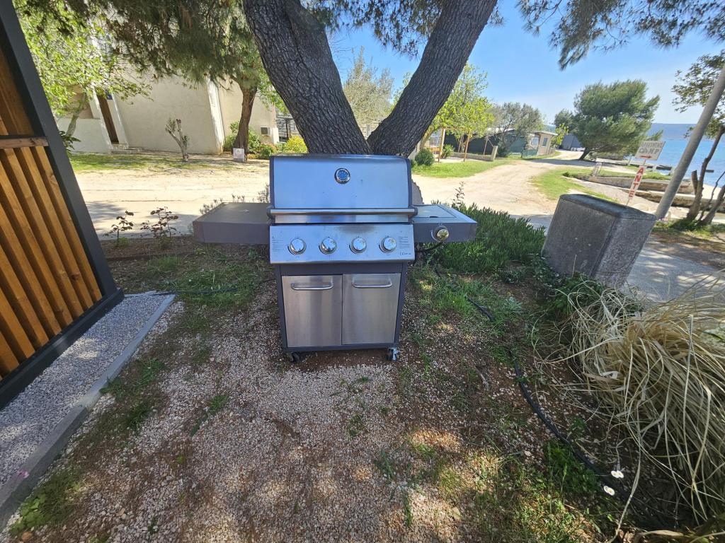 Nova moderna mobilna kućica. Smještena u mirnom i malom mjestu, svega nekoliko koraka od plaže. Direktan pogled na more, velika terasa, plinski roštilj i ležaljke za vaš savršeni odmor. Sastoji se od 2 spavaće sobe, kupaonice, kuhinje, dnevnog boravka s kaučem na razvlačenje. Objekt se nalazi na samoj obali, prvi red do mora, a do dućana, pekarne, restorana i kafića ima svega 5 minuta lagane šetnje. Gostima su na raspolaganju TV, internet, klima, plinski roštilj, sušilo za kosu, te besplatni parking.