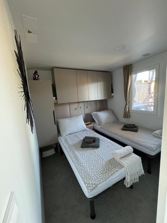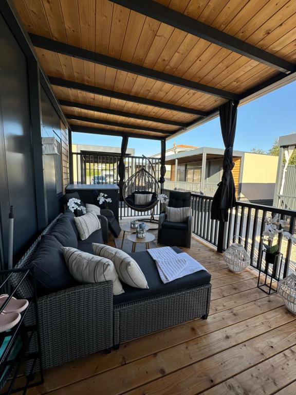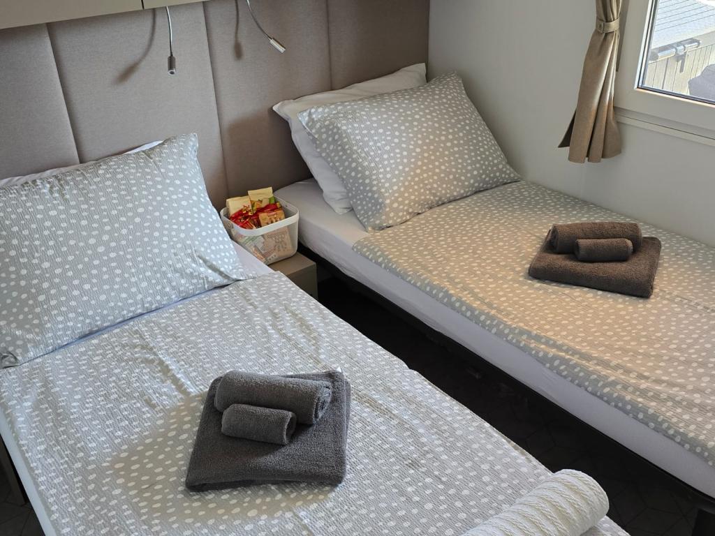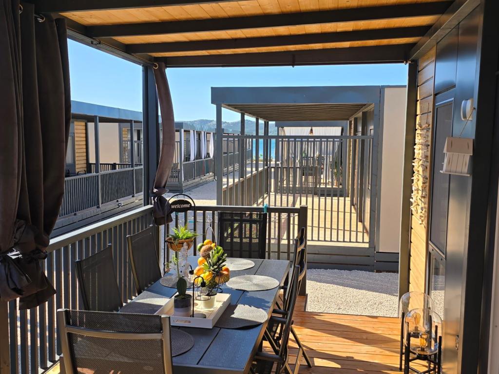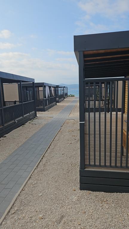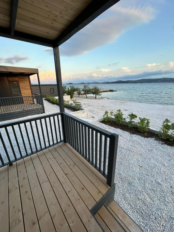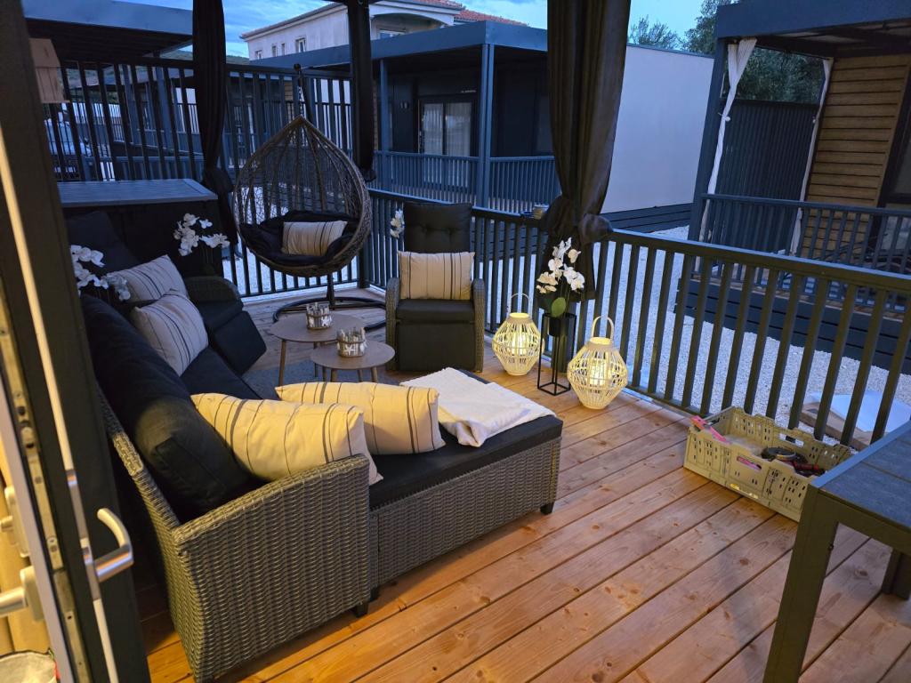 Mobilna kućica smještena u mirnom kampu,samo 40 metara od plaže,prostrana terasa sa plinskim roštiljem i stropnim ventilatorima te popratnim sadržajem za opuštanje,ljuljačka i fotelje za sjedenje. Kućica je opremljena svom dodatnom opremom i posuđem koje je potrebno da uživate na svom odmoru baš kao u svom domu. U sami.kamp je zabranjen ulaz vozila kako bi djeca mogla bezbrižno uživla u igri dok se vi odmarate.