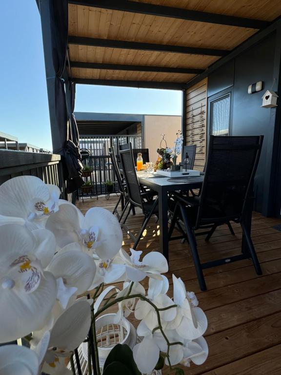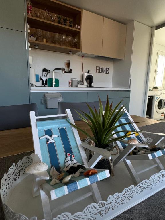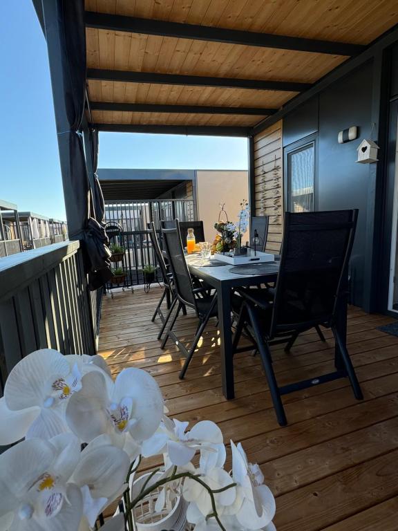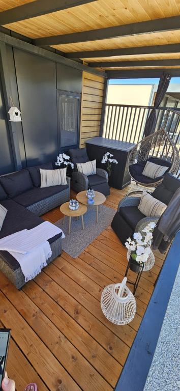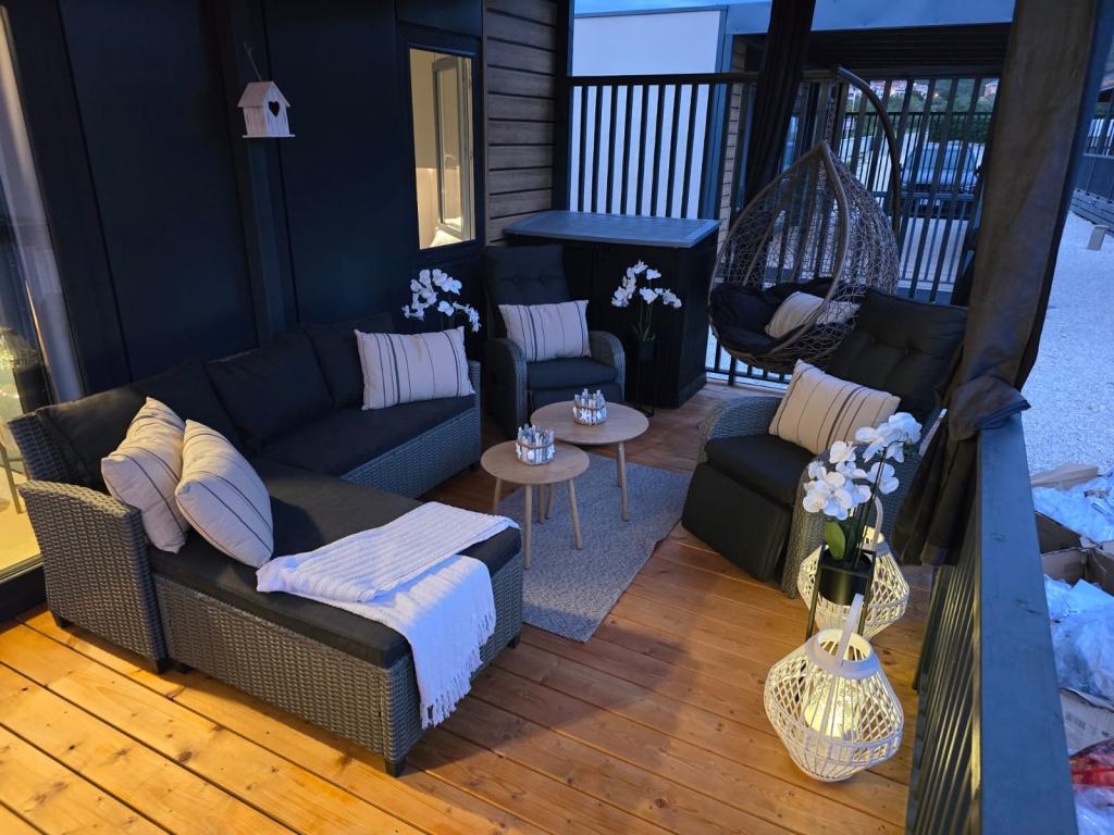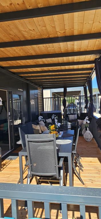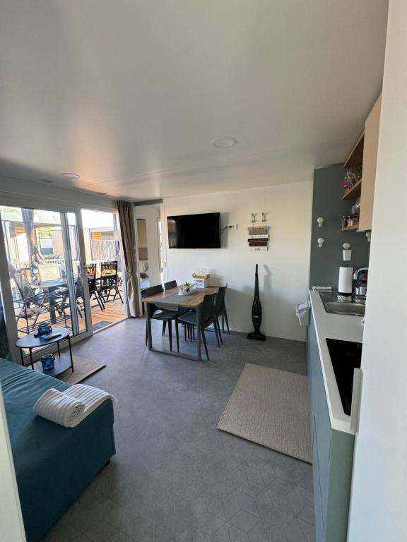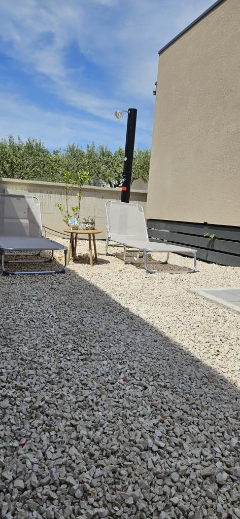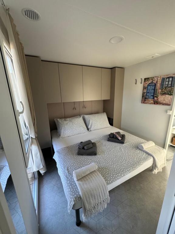 Mobilna kućica smještena u mirnom kampu,samo 40 metara od plaže,prostrana terasa sa plinskim roštiljem i stropnim ventilatorima te popratnim sadržajem za opuštanje,ljuljačka i fotelje za sjedenje. Kućica je opremljena svom dodatnom opremom i posuđem koje je potrebno da uživate na svom odmoru baš kao u svom domu. U sami.kamp je zabranjen ulaz vozila kako bi djeca mogla bezbrižno uživla u igri dok se vi odmarate.