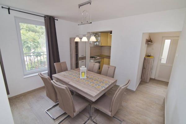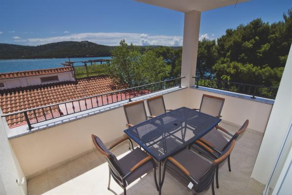 Apartman za 6 osoba u obiteljskoj kući, smješten uz more, 5 minuta hoda udaljen od glavne plaže u mjestu. Također se moguće kupati i ispred samog apartmana. Apartman se nalazi u mirnom i tihom dijelu mjesta, idealan za obiteljski odmor. Kompletno je opremljen, sa terasom s pogledom na more( 13m2), natkrivenom. Apartman ima zaseban ulaz i parking, a u dvorištu se može koristiti i roštilj. Apartman je klimatiziran i ima osiguran Wi-fi. Sastoji se od 3 spavaće sobe s bračnim krevetom, dnevne sobe, velike blagavaone, kupaone i kuhinje. Također je moguće osigurati i vez za brod ispred apartmana. Centar je udaljen oko 15 minuta hoda.