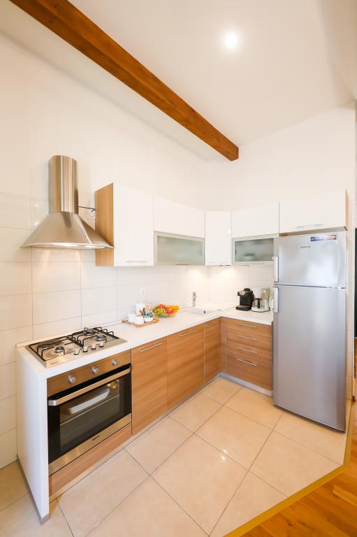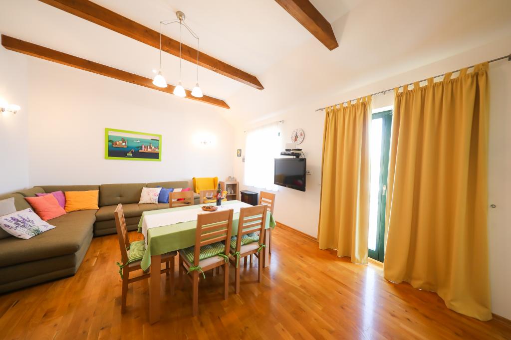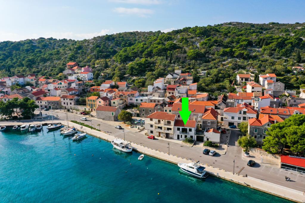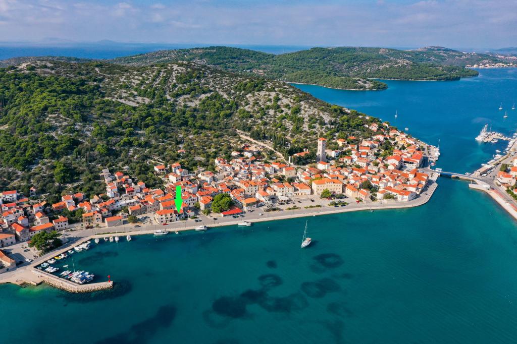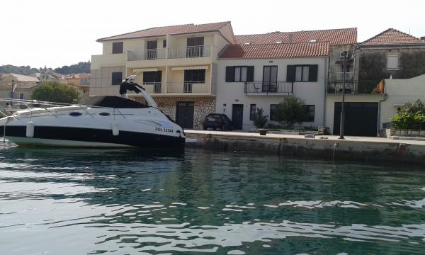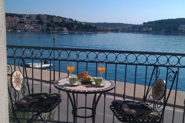 Apartman je smješten u prvom redu do mora u staroj jezgri Tisnog. Potpuno je novo uređen i opremljen, s prekrasnim pogledom na more, selo, te obližnje otoke i obalu. Apartman ima dva balkona, jedan s pogledom na more, te jedan na stražnjoj strani kuće. Smješten je na 1. katu objekta i nudi odlične uvijete i ambijent za vrlo ugodan odmor. U prizemlju kuće nalazi se i manje, zatvoreno dvorište s roštiljem koji je na raspolaganju gostima. Na upit raspoložive su i 3 bicikle. Ispred kuće osigurano je jedno parkirno mjesto, bez naplate te vez za brod. Apartman je moderno uređen, opremljen kuhinjom s pećnicom, štednjakom, hladnjakom, mašinom za pranje posuđa, aparatom za kavu, kuhalom za vodu. Kupatilo je opremljeno tuš kabinom, mašinom za pranje rublja, sušilom za kosu. U apartmanu je raspoloživo glačalo, SAT TV, WiFi, radio, a svaka soba ima svoju zasebnu klimu,