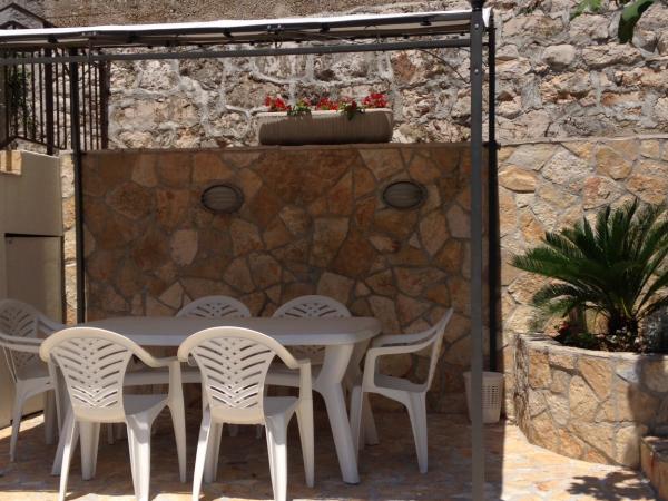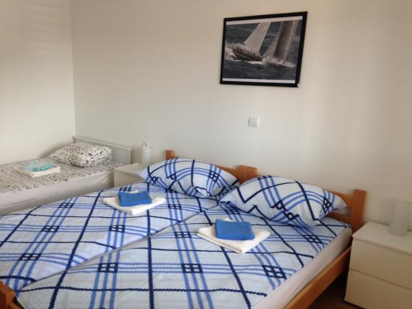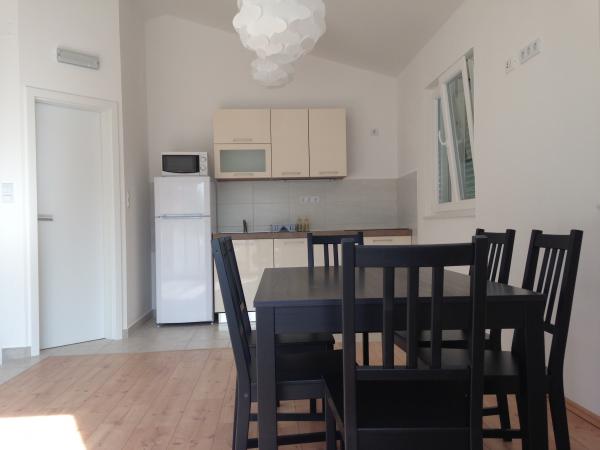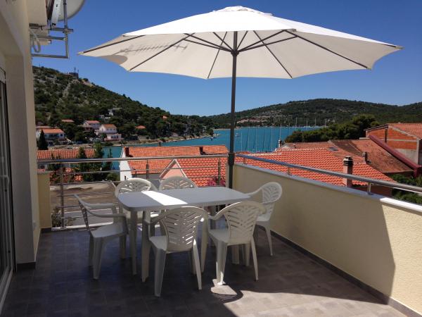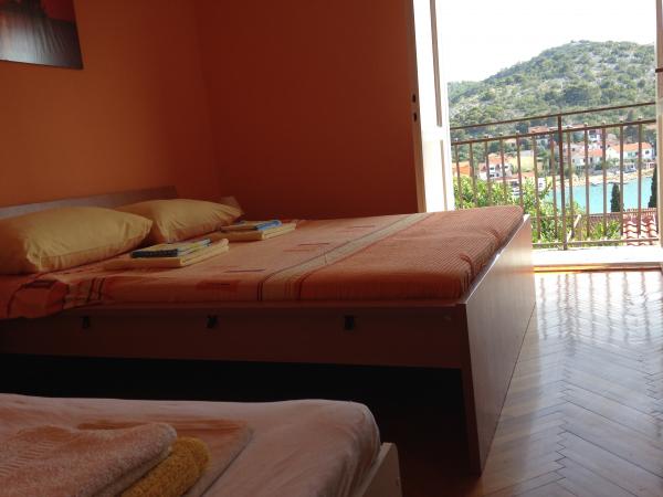 Ovaj prostrani apartman se nalazi na prvom katu obiteljske kuće i ima zaseban ulaz. Sastoji se od 3 spavaće sobe (dvije dvokrevetne i jedna trokrevetna), dnevnog boravka (mogućnost ležaja), kuhinje i blagovaone te kupaone. Sve tri sobe su povezane balkonom s jednim od najljepših pogleda na more i otoke. U sklopu apartmana je prostrana terasa. Nudimo mogućnost korištenja roštilja. Osigurano je parkirno mjesto za 2 automobila.