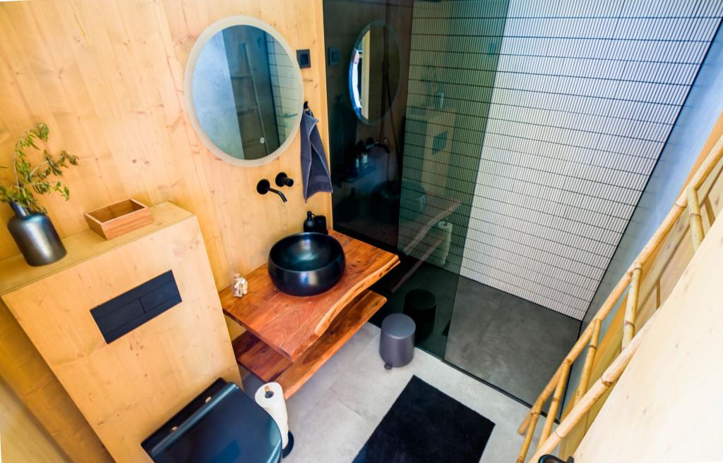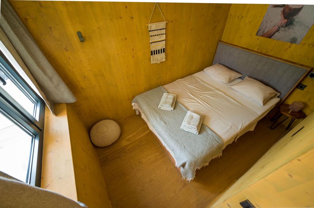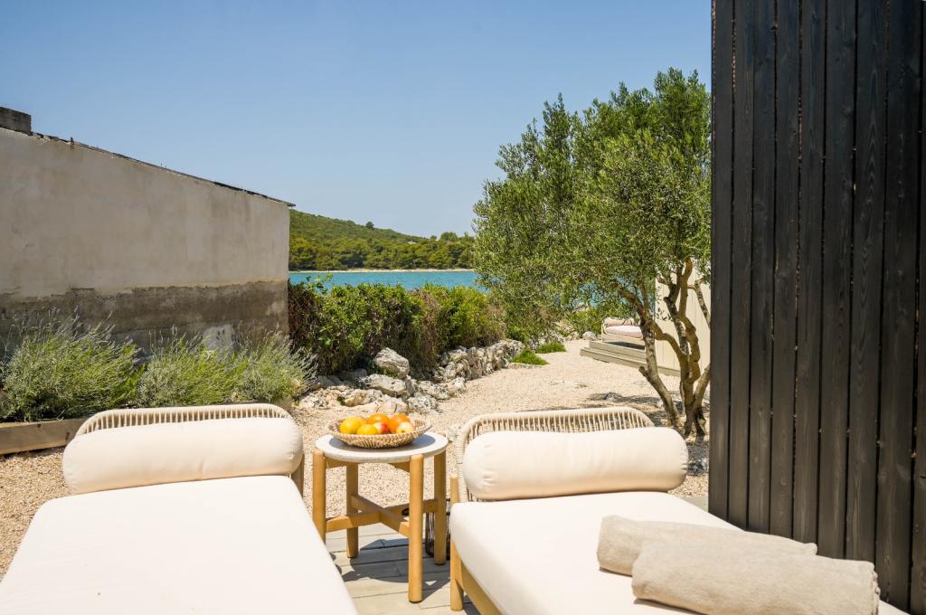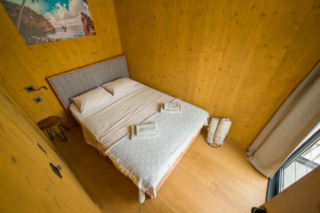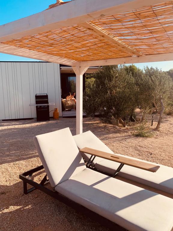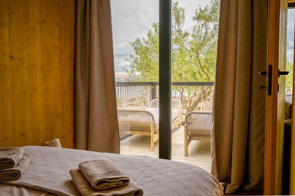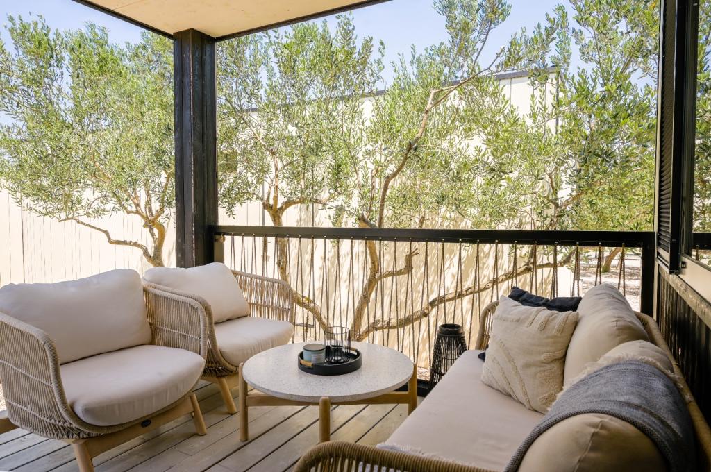 Mobilna kučica je udaljena samo nekoliko koraka od mora. Moderni interijer apartmana susreće se s tipičnom Dalmacijom. Okružen bijelim šljunkom i zelenim maslinama, a ispred samo beskrajno plavetnilo. More, sunce i vjetar stvaraju neopisivu igru koja oduševljava sva osjetila. Bez obzira spavate li u jednoj od dvije spavaće sobe, ujutro možete uživati u plavetnilu mora i sjaju sunca. A iz potpuno opremljene kuhinje sa svime što vam je potrebno (uključujući perilicu posuđa i zamrzivač) i prostranog blagovaonskog stola, otvara se neopisiv pogled na terasu i sve čari koje sunce i more pružaju. Bilo da pripremate obrok u kuhinji ili roštiljate na terasi, zajamčeni su vam potpuni mir i privatnost. Cilj svakog godišnjeg odmora je ostaviti svakodnevicu i rutinu iza sebe, a upravo to nudi naš objekt. Iako okruženi s 8 sličnih objekata, uživat ćete u potpunoj privatnosti i miru jer vam svi čuvaju leđa. Pred vama je samo granica neba i mora.