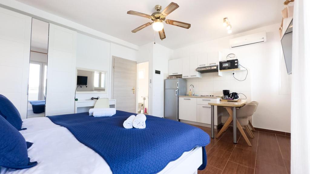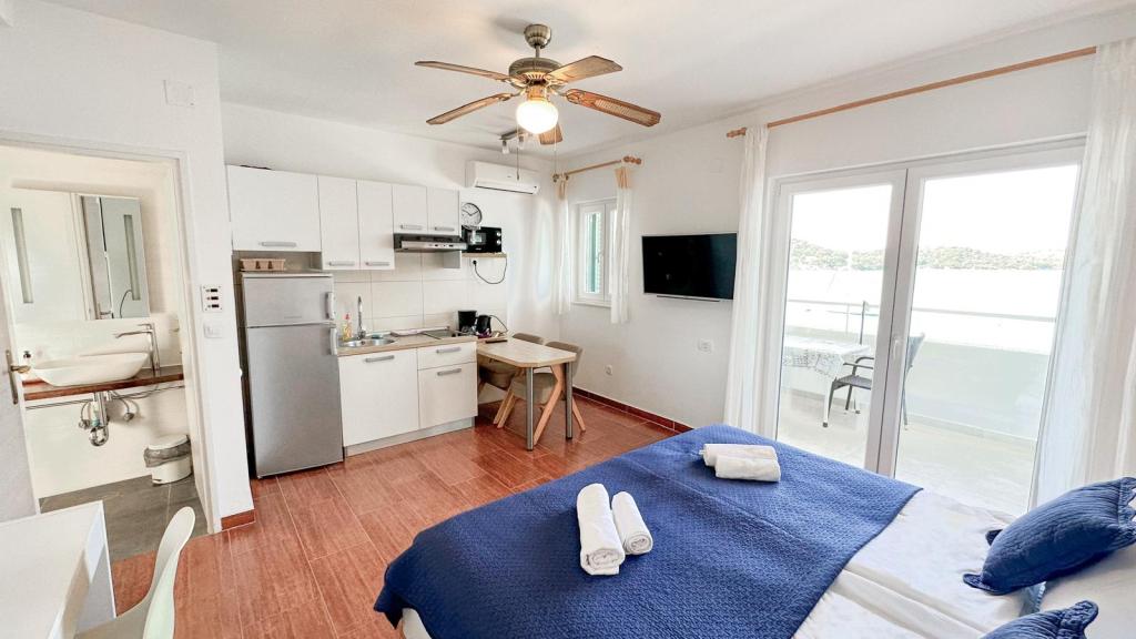 Objekat je prvi red do mora. Apartmani i sobe s prekrasnim pogledom na more imaju balkon. Parking je osiguran. U prizemlju objekta se nalazi terasa sa ležaljkama uz obalu.