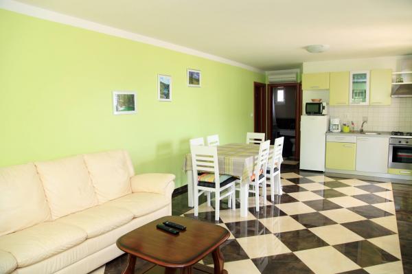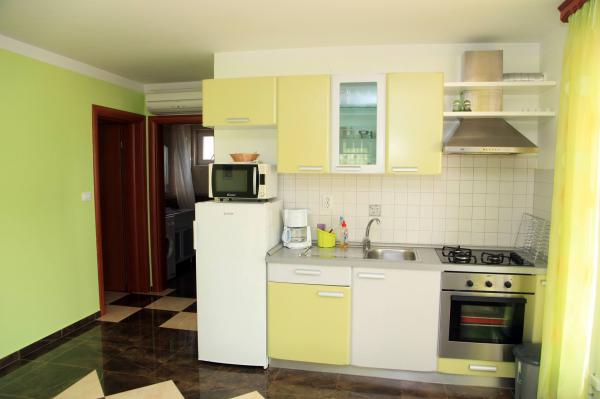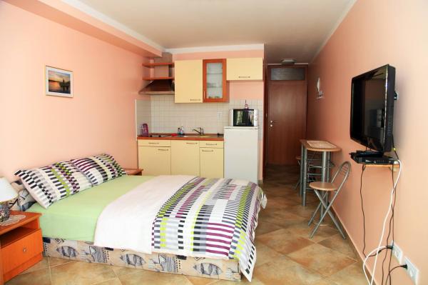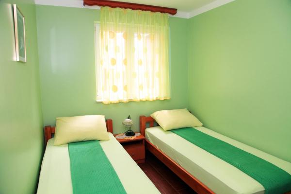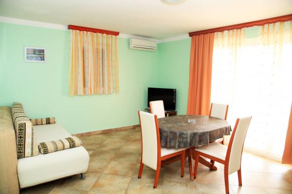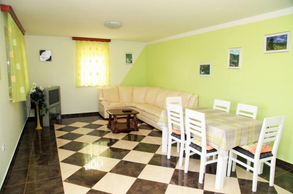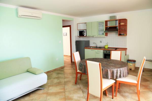 Pročitaj više Smještajne jedinice- Plaćanje po dolasku u kunama/eurima. - Rezervacija se smatra potvrđenom nakon što je uplaćena akontacija od 30%. - Za boravak do 3 noćenja cijena se uvećava za 30%. - Boravišna pristojba. - Kućni ljubimci su dobrodošli. - Pušenje dozvoljeno. - Završno čišćenje apartmana se posebno naplaćuje. - Na zahtjev i uz nadoplatu vršimo uslugu glačanja i pranja rublja. - Dolazak i odlazak prema dogovoru. - Za grupe organiziramo polupansion; spavanje u apartmanima, a polupasion u restoranu udaljenom 40 m.