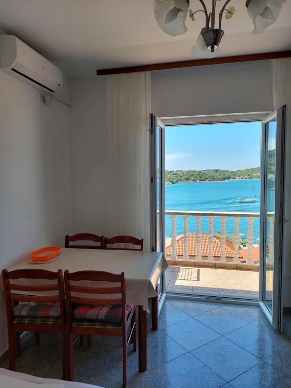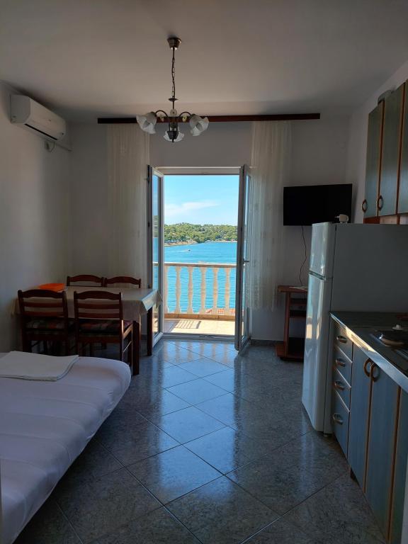 Prekrasni apartmani s pogledom na more u Tisnom! Uživajte u opuštajućem odmoru u našim modernim i ugodnim apartmanima, udaljenim samo 50 metara od Jadranskog mora. Svaki apartman nudi: prostranu terasu s pogledom, potpuno opremljenu kuhinju, dnevni boravak s TV-om, besplatan Wi-Fi, klima uređaj, i privatnu kupaonicu. Nudimo i besplatan vez za brodove, na obali odmah ispod apartmana. Tisno je slikovito mjesto s bogatom ponudom restorana, kafića i trgovina. U blizini se nalaze i brojni nacionalni parkovi i otoci koje možete istraživati. Rezervirajte svoj boravak kod nas i uživajte u nezaboravnom odmoru na Jadranu!