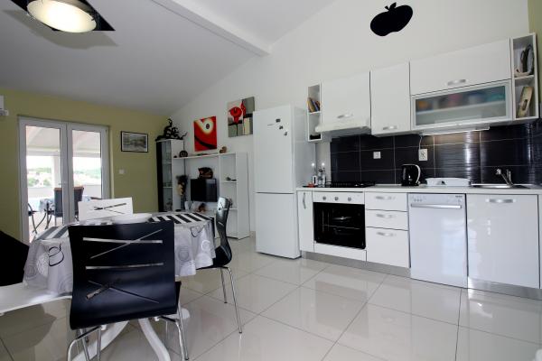 Novo sagrađeni apartmani u Tisnom! Naša obiteljska kuća smještena je na otočnom dijelu mjesta u mirnom i tihom djelu no samo 5 minuta lagane šetnje od samog centra. Kuća je opremljena sa 3 apartmana, jedan veliki (100m2) i 2 mala (50m2) od kojeg svaki ima zasebnu terasu. Okoliš kuće uređen je velikim vrtom i mjestom za roštilj koji gosti mogu koristiti. Postoji mogućnost parkinga 50ak metara od kuće na privatnom parkingu vlasnika. Blizina plaže u borovoj šumi na 5 minuta hoda od kuće.
