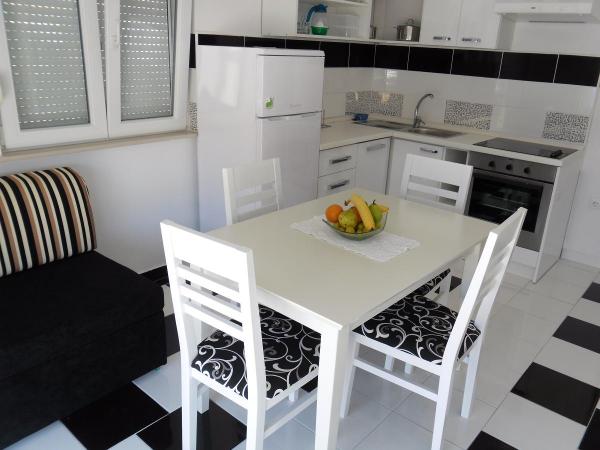 Kuća ima 10 stanova (1-4 sobni stanovi) s ukupno 22 kreveta za 36 osoba. Svaka spavaća soba ima svoje kupatilo (Tuš/WC). Svaki dnevni boravak ima otvorenu kuhinju i satelitsku televiziju. Svaki stan ima svoj balkon (različite dubine) s pogledom na more. Ponudu zaokružuju velika zajednička prostorija s velikom terasom na kojoj se po dogovoru nude usluge doručka i večere te WLAN priključak. Komfor i oprema kao i dodatni sadržaji stanova su iznad uobičajenog nivoa. Nastojimo se istaknuti u kvaliteti. Cijela kuća se grije i hladi.