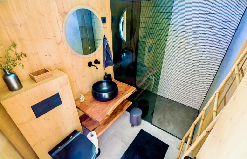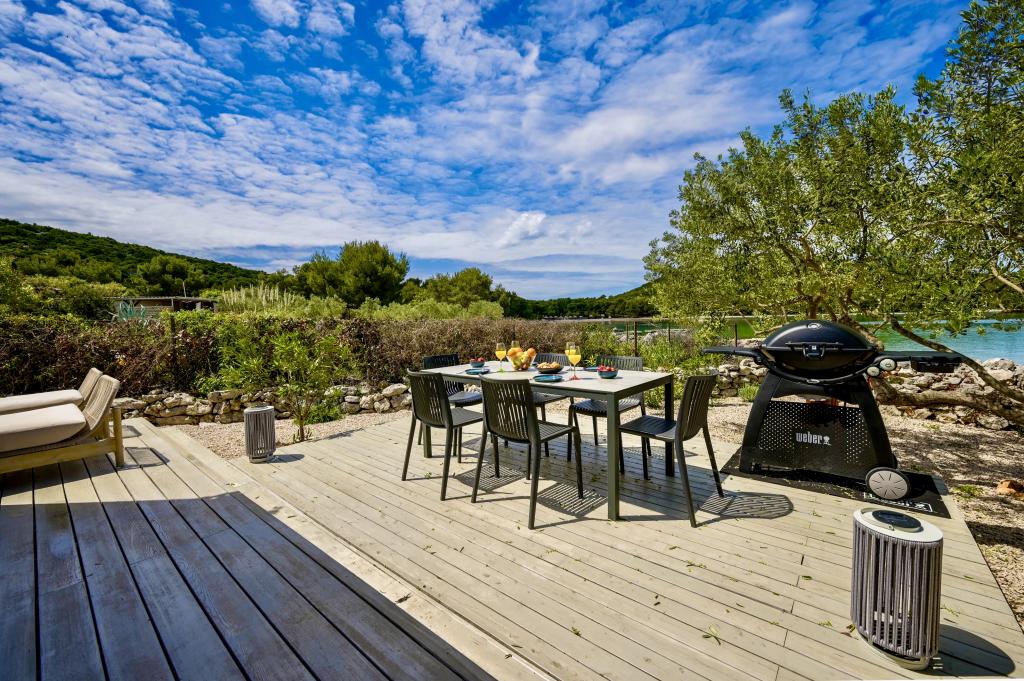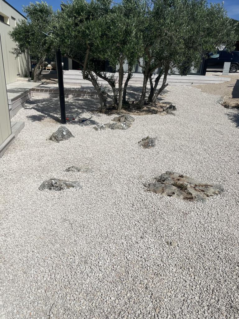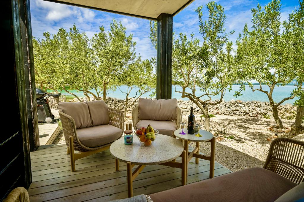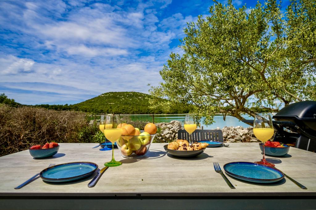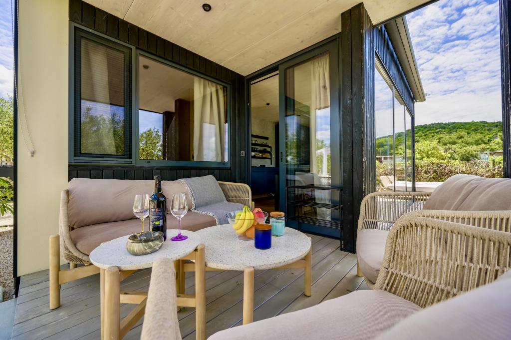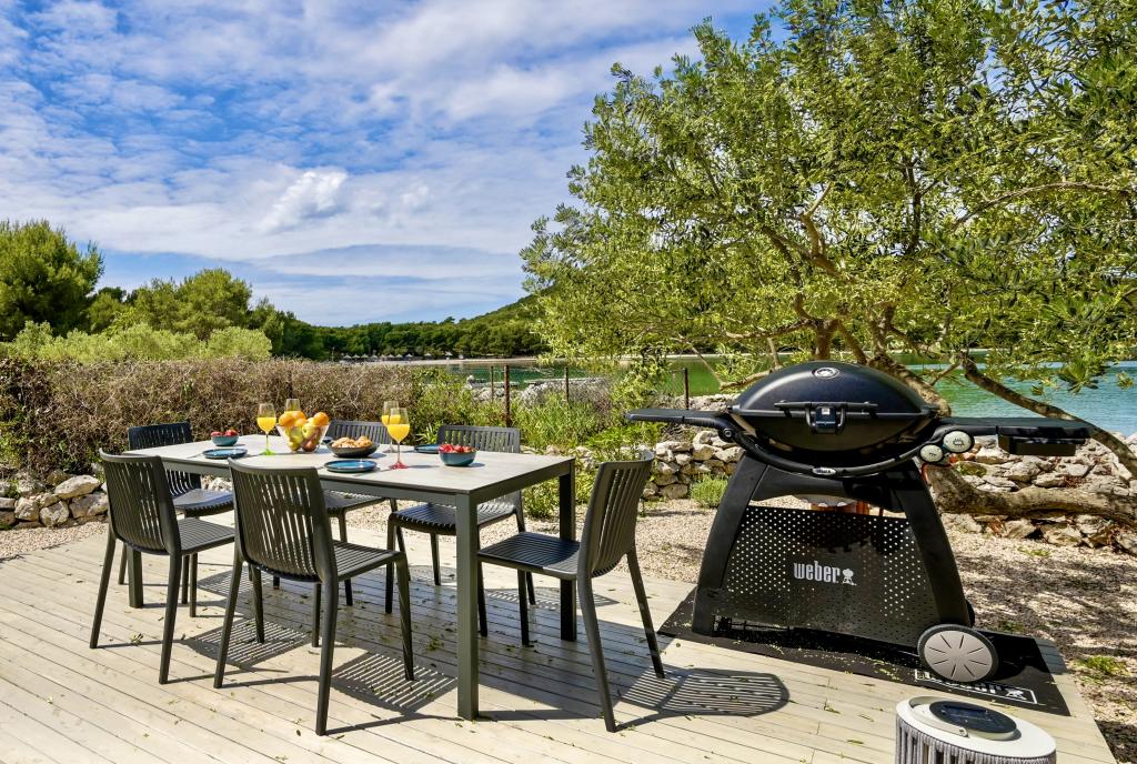 Mobilna kučica je udaljena samo nekoliko koraka od mora. Moderni interijer apartmana susreće se s tipičnom Dalmacijom.Okružen bijelim kamenčićim i zelenim maslinama, a ispred samo beskrajno plavetnilo. More, sunce i vjetar stvaraju neopisivu igru ​​koja oduševljava sva osjetila. Bez obzira spavate li u jednoj od dvije spavaće sobe, ujutro možete uživati ​​u plavetnilu mora i sjaju sunca. A iz potpuno opremljene kuhinje sa svime što vam je potrebno (uključujući perilicu posuđa i zamrzivač) i prostranog blagovaonskog stola, otvara se neopisiv pogled na terasu i sve čari koje sunce i more pružaju. Bilo da pripremate obrok u kuhinji ili roštiljate na terasi, zajamčeni su vam potpuni mir i privatnost. Cilj svakog godišnjeg odmora je ostaviti svakodnevicu i rutinu iza sebe, a upravo to nudi naš objekt. Iako okruženi s 8 sličnih zgrada, uživat ćete u potpunoj privatnosti i miru jer vam svi čuvaju leđa. Pred Vama je samo granica neba i mora.