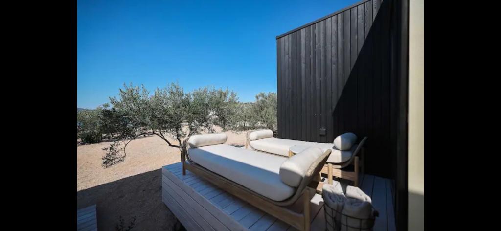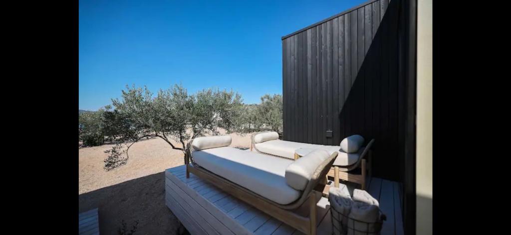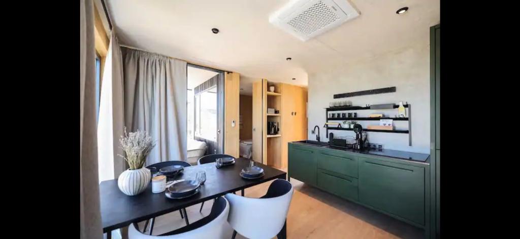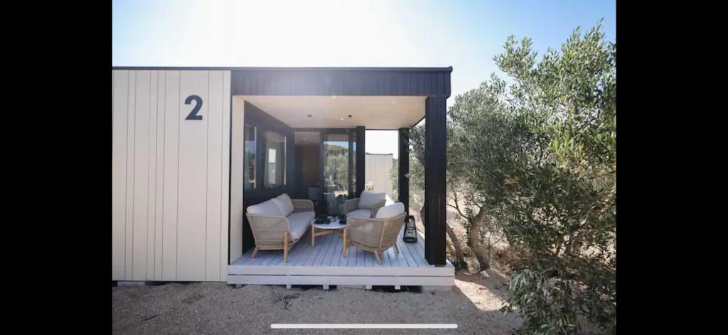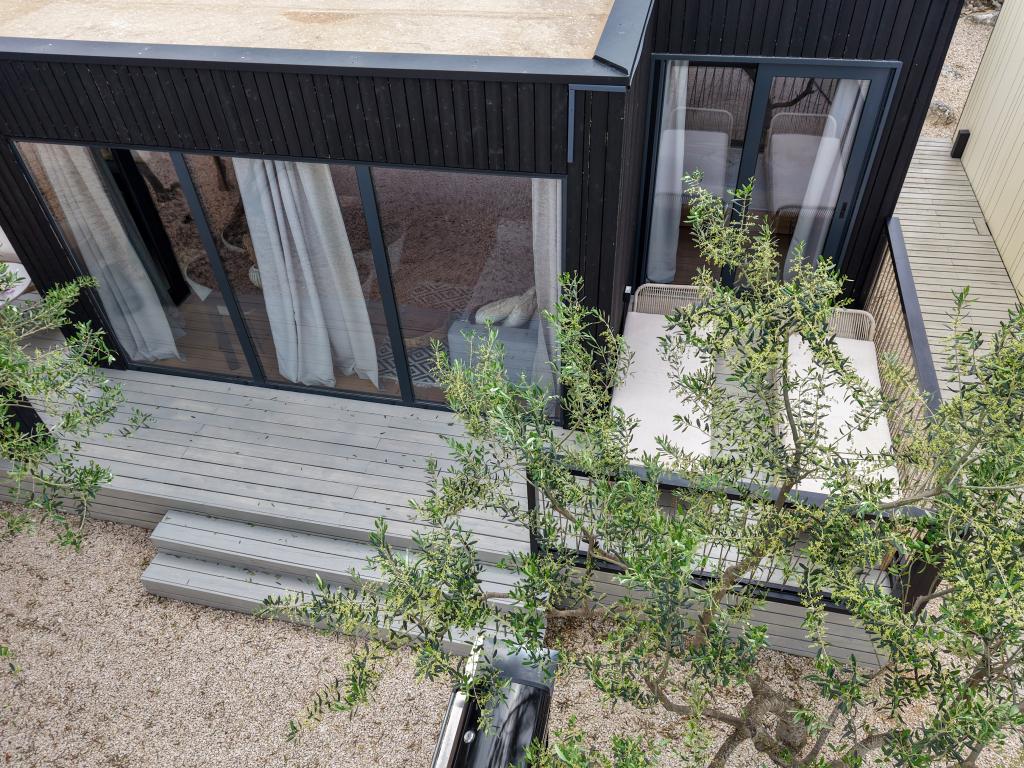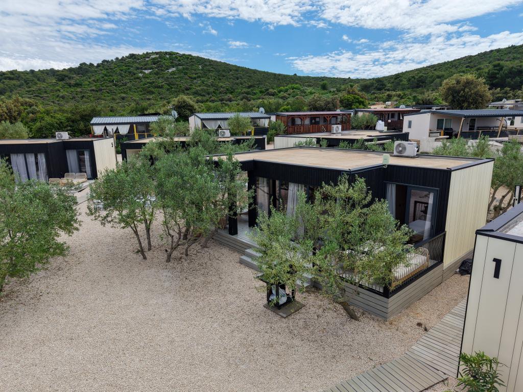 Romantična mobilna kućica smještena je svega nekoliko koraka od mora, okružena maslinama i bijelim kamenčićima, s očaravajućim pogledom na beskrajno plavetnilo. Idealna za parove ili obitelj, pruža spoj moderne udobnosti i dalmatinskog šarma. Uživajte u dvije spavaće sobe, potpuno opremljenoj kuhinji (s perilicom posuđa i zamrzivačem), prostranom blagovaonskom prostoru i terasi s roštiljem. Jutra počinju uz sunce i šum valova, a večeri završavaju pod zvjezdanim nebom, u miru i potpunoj privatnosti. Gostima su na raspolaganju besplatan Wi-Fi i privatni parking. Iako okruženi s nekoliko kućica, ovdje ćete se osjećati kao da ste sami na svijetu – između neba i mora.