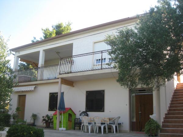 Kuća je smještena svega 5 minuta hoda do plaža i centra. Okružena je maslinama i skrivena od pogleda prolaznika. Osiguran je parking ispred kuće. Moguće je koristiti vanjski roštilj. Veći apartman 1/4 1 je na katu kuće. Sa prekrasne prostrane terase se pruža predivan pogled na more i grad Biograd. Apartman je čist, ugodan i u potpunosti opremljen za boravak.