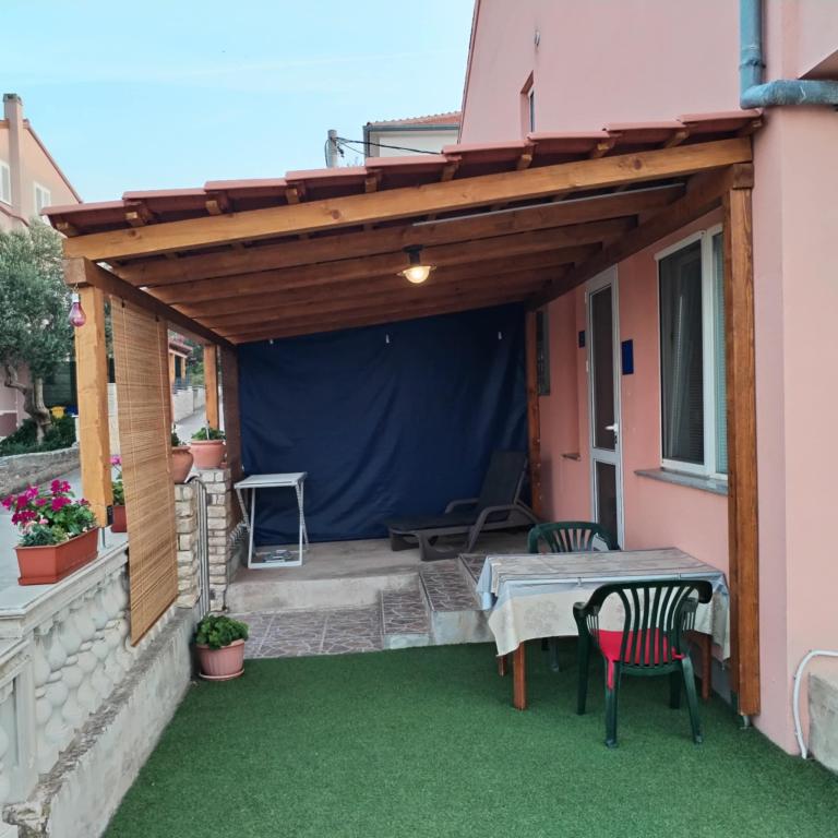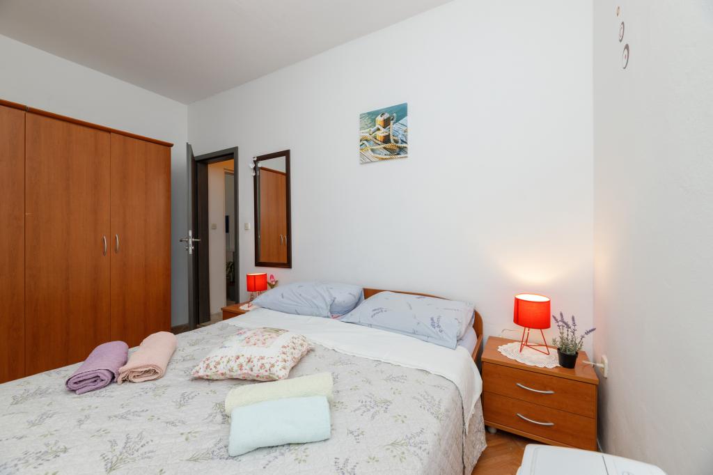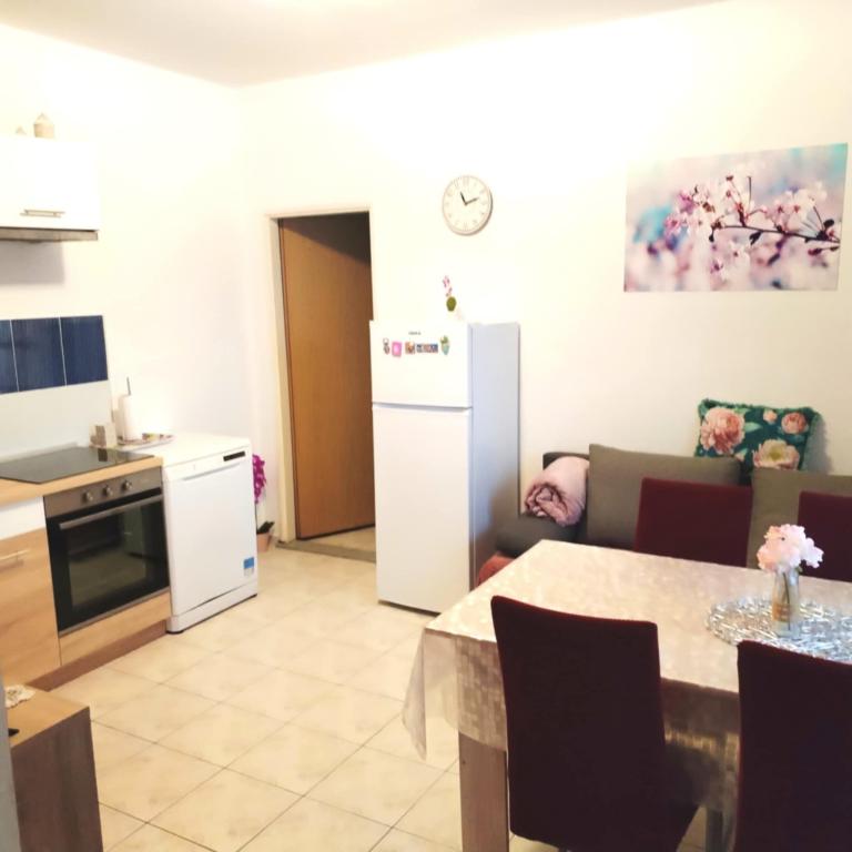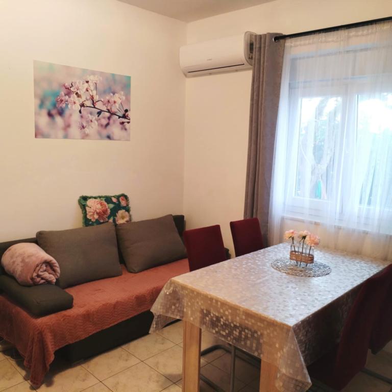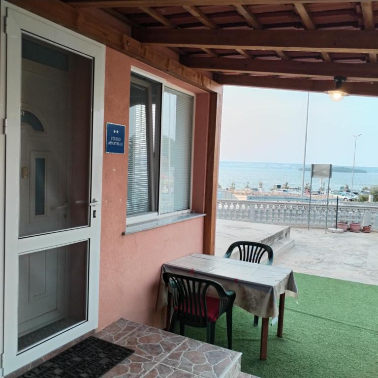 Jednosoban apartman u Tkonu na otoku Pašmanu, 20 m od pješčane plaže i 50 m od centra Tkona, nalazi se u prizemlju. Ima sobu sa bračnim ležajem za dvije osobe i kauč u boravku za dvije osobe. Kupatilo sa tuš kabinom, perilica rublja, kuhinja sa pećnicom i perilicom za suđe. Apartman je kompletno opremljen, ima tv, internet, klima, parking, grill. Ima terasa sa pogledom na more. U blizini apartmana se nalaze svi potrebni sadržaji, trgovine, restorani, konobe, caffe barovi, pekara, slastičarnica, mesnica, ljekarna, ambulanta. U Tkonu gosti mogu uživati na brojnim pješčanim plažama u uvalama, vožnjom bicikla po biciklističkim stazama duž otoka, u različitim događanjima i feštama tijekom ljeta i organiziranim brodom iz Tkona posjetiti obližnji nacionalni park Kornati. Također mogu posjetiti i park prirode Vransko jezero.