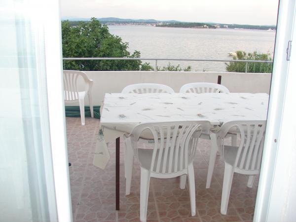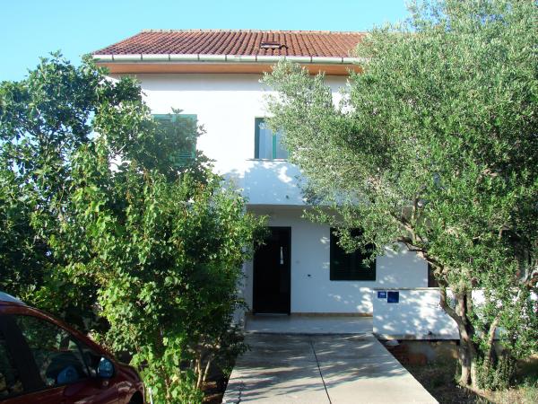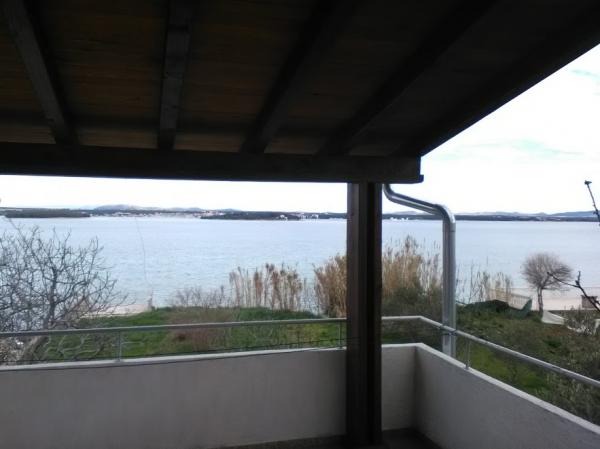 Kuća u mirnom djelu mjesta Tkon na otoku Pašmanu, dolazak u mjesto je trajektom koji prometuje svakih sat vremena po potrebi i više iz mjesta Biograd. Kuća u kojoj su apartmani prvi red do mora 10 metara, površina apartmana je 130 m2, do mjesta centra ima 10 minuta hoda, ispred kuće je veliki parking, apartman opremljen sa svime potrebnim za pripremu jela i pića, wi-fi, klima, tv, vanjski tuš, roštilj. Raspored u apartmanu tri sobe plus još jedna dječja, kupatilo i wc , plus još jedan wc, velika terasa pogled na more , kuhinja i veliki dnevni boravak. Terasa natkrivena za sunčanje i druženje povezana je sa kuhinjom, pogled na more i okolna mjesta. Apartmani su isključivo za iznajmljivanje, može se iznajmiti cijela kuća idealno za obitelj.