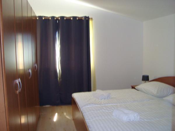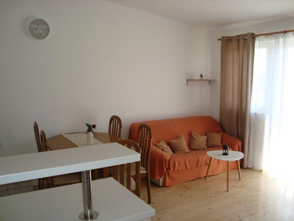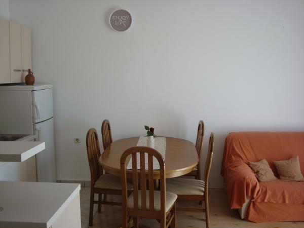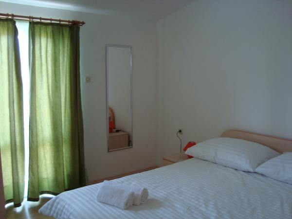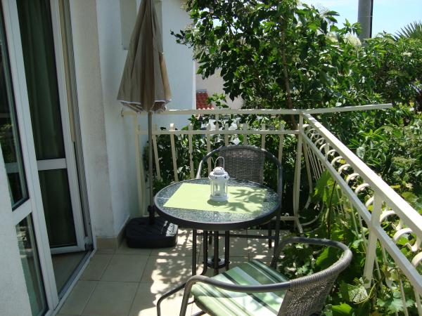 Kompletno opremljen dvosobni apartman s dva balkona i pogledom na more ( svaka soba ima svoj zasebni wc i tuš kabinu ), nalazi se na prvom katu obiteljske kuće u mirnom dijelu Tribunja ( Sovlja ), sa privatnim parkingom i korištenjem roštilja. Apartman je klimatiziran i nudi besplatan WiFi kao i blagovaonicu, dnevni boravak te kuhinju s perilicom posuđa, pećnicom i mikrovalnom pećnicom. Također uključuje ručnike i posteljinu te glačalo za odjeću. Apartman je udaljen od marine u Tribunju 1, 4 km te od luke u Tribunju 1, 2 km, 7 minuta hoda do plaže ( 400 m ), te 15 minuta hoda do centra mjesta gdje se nalaze trgovine, mesnice, ribarnica i tržnica ( 1200 m ). Pizzeria, restoran i pekara udaljeni su od objekta 200 m.