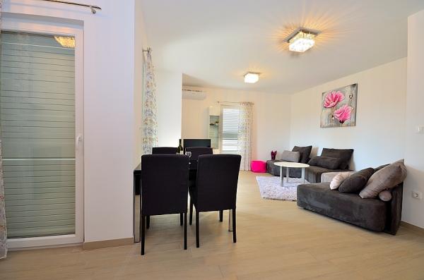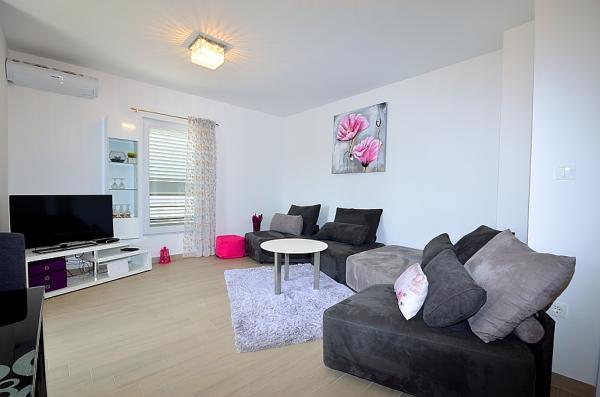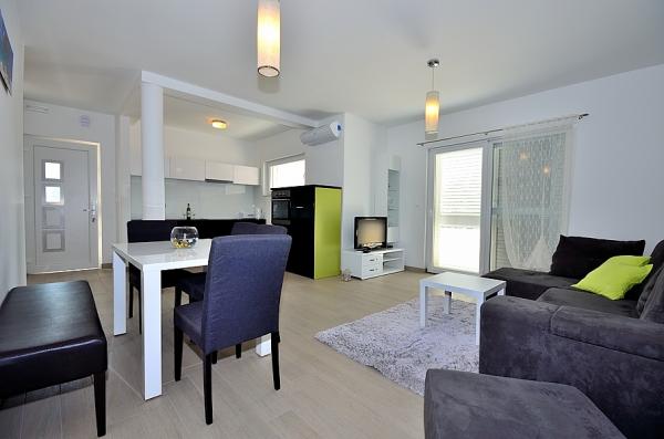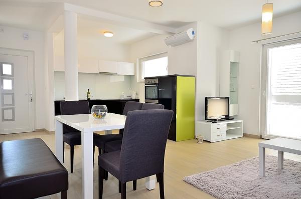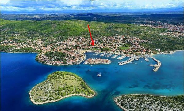 Tribunj- apartman sa dvije spavaće sobe pomoćni ležaj, wc-e, kupaonica wc-e, kuhinja sa blagovaonom i dnevni boravak, terasa, parkirno mjesto, klima, 300 m od plaže, 200 m do centra, 100 m do trgovine i ugostiteljskih objekata.