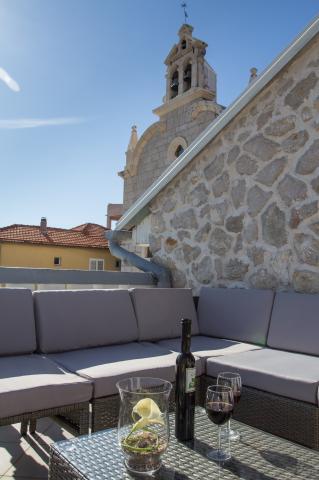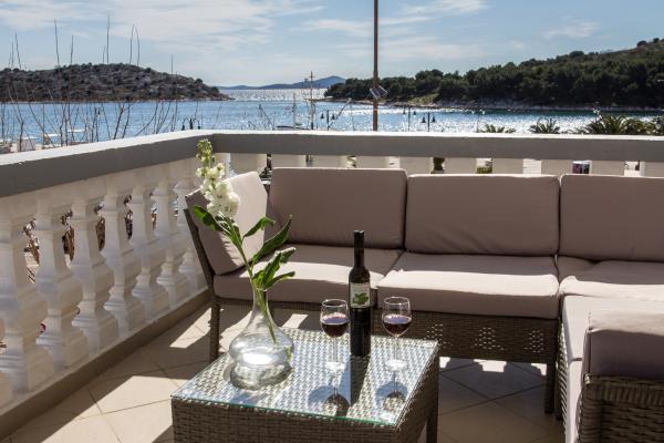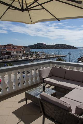 Prekrasna kamena kuća u kojoj se nalazi apartman, uređena je sa puno ljubavi i dekorirana sa velikom pažnjom na detalje, tako da se u njoj osjećate opušteno i ugodno tokom vašeg boravka. Kuća je smještena u samom srcu malog ribarskoga mjesta Tribunj, u prvom redu uz more. Samo nekoliko koraka udaljena je od prve plaže, restorana, kafića, trgovine i svega ostalog što će vaš odmor učiniti jednostavnijim i sadržajnijim. Apartman je površine 70 m² i predviđen je za smještaj do 6 osoba. U prizemlju se nalazi prostrani dnevni boravak koji je od kuhinje odvojen šank stolom, te kupatilo, a na katu se nalaze dvije spavaće sobe. Sve sobe nude zadivljujući pogled na more, kao i dvije velike terase koje ovaj apartman čine posebnim.