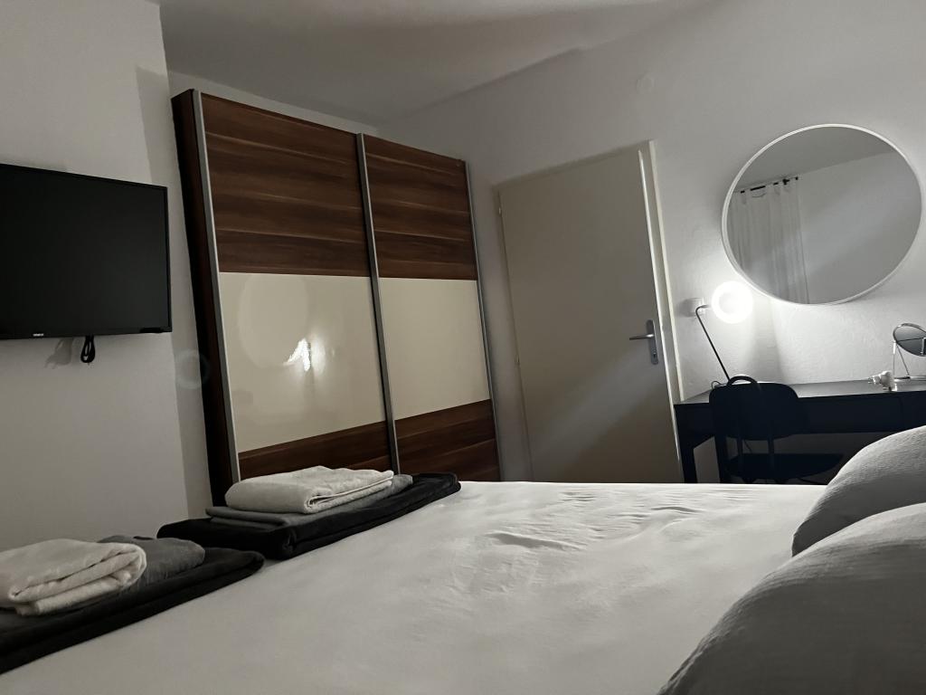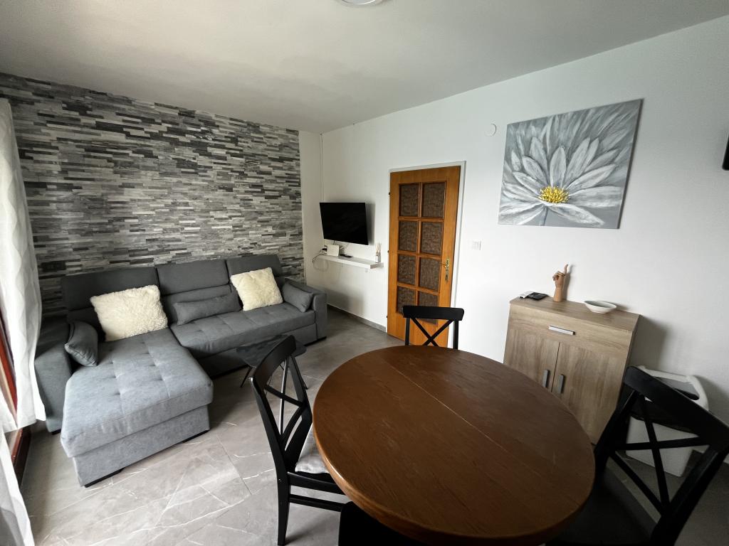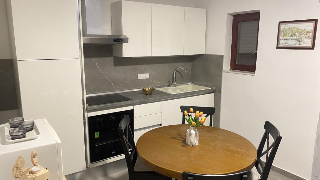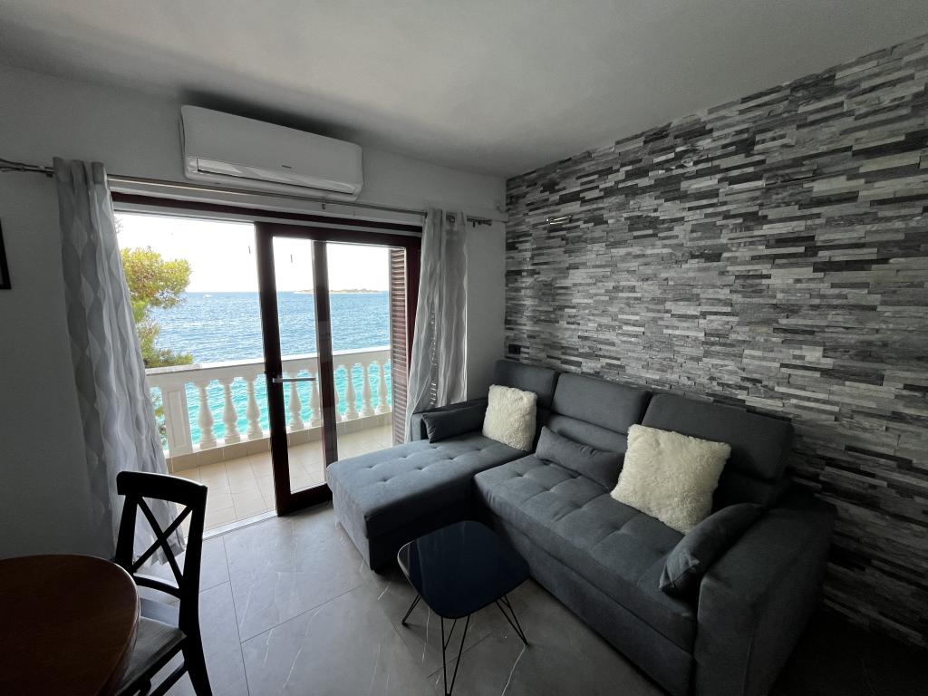 Simpatični mali apartman smješten u mirnom dijelu Tribunja prvi red do mora. Budite se uz prekrasne izlaske sunca s pogledom na more i otoke, započnite dan kupanjem svega minutu od svog apartmana. Objekt se nalazi na 3 minuta hoda do centra, restorana, kafića, pekare… U apartmanu se nalaze dvije sobe ( jedna s bračnim krevetom i druga s dva kreveta za jednu osobu) ,wc, kuhinja, dnevni boravak i terasa te vlastiti parking odmah ispred apartmana.