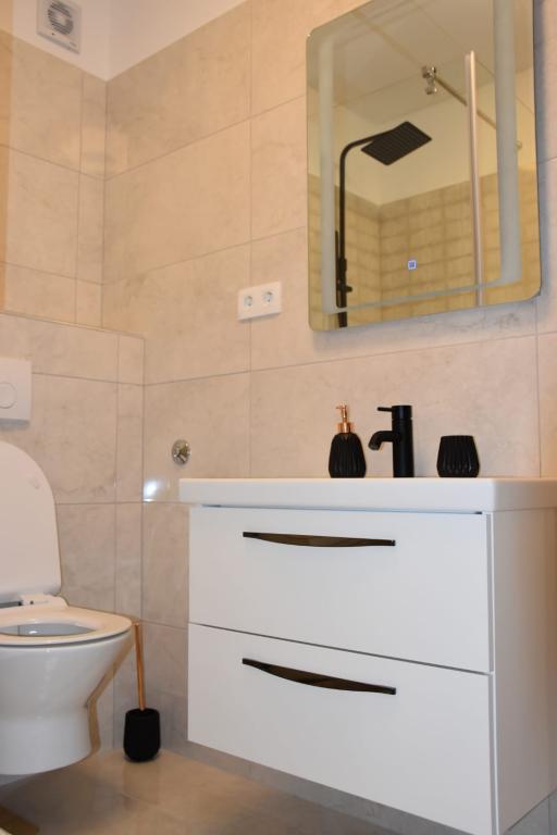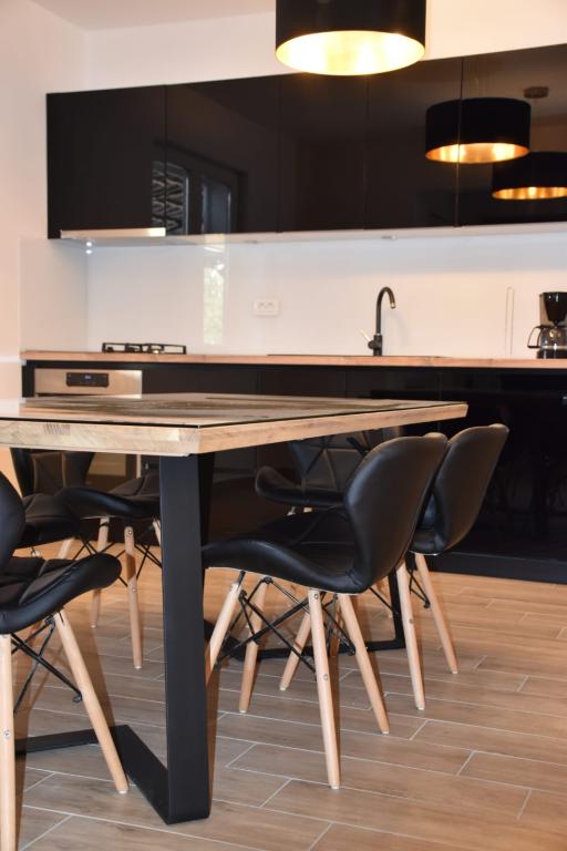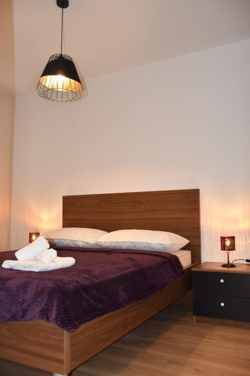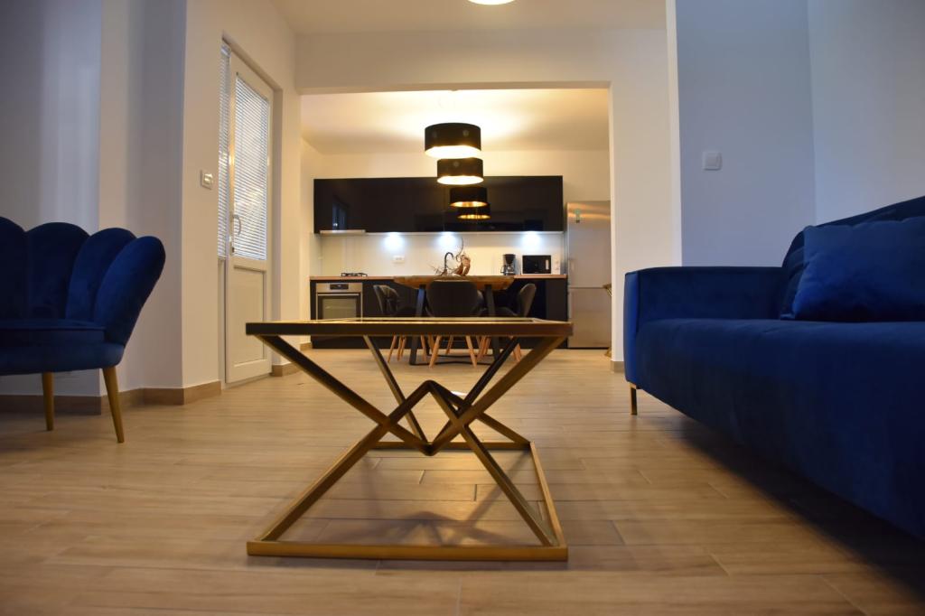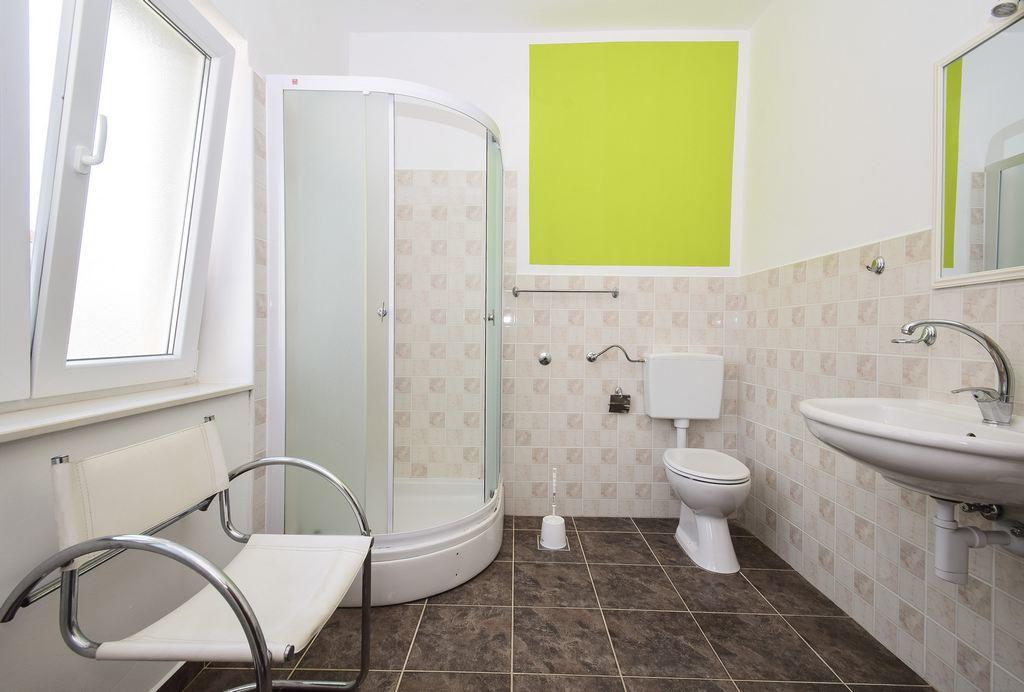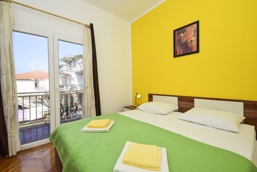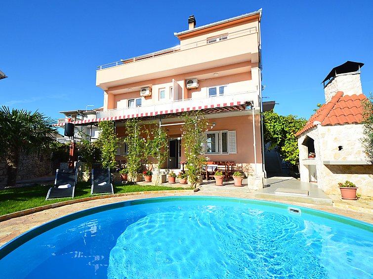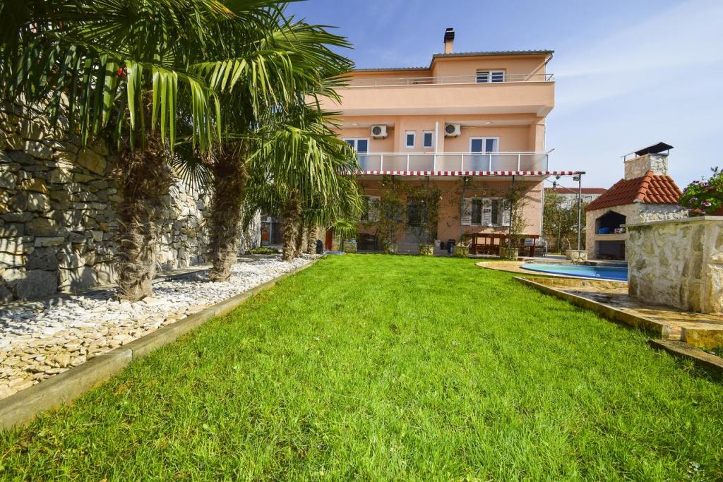 Kompleks se sastoji od 3 odvojena apartmana smještenih u prizemlju i na prvom katu. Ovaj prostrani objekt posjeduje 5 spavaćih soba i 5 kupaonica, te je idealan za grupe od 10+2 ljudi. Bazen, dvorište i roštilj koriste samo gosti apartmana. Check in: 15:00h Check out: 10:00h