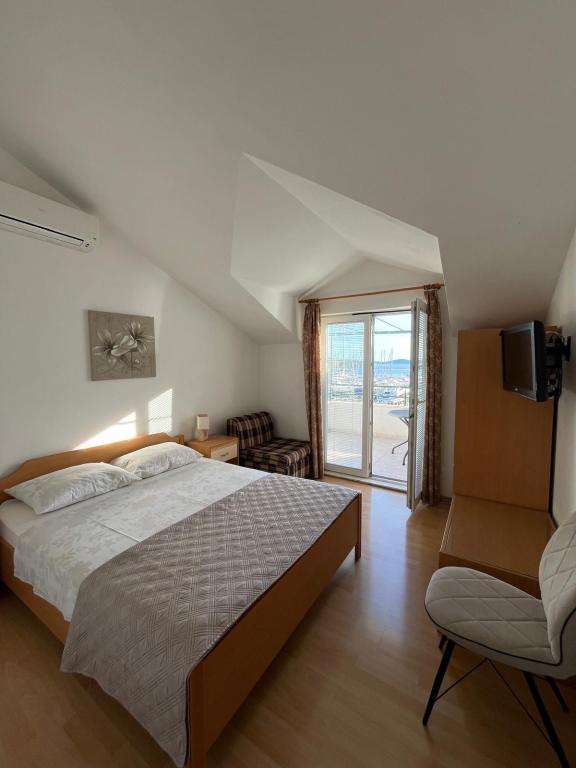 Apartmani Agata nalaze se Tribunju, u neposrednoj blizini marine, od plaže udaljeni samo 3 minute hoda. Na katu kuće iznajmljuju se dva jednosobna apartmana (A1, A2) s dodatnim ležajem u blagovaonici/dnevnom boravku. Kuhinja, kupaonica i balkon/terasa s lijepim pogledom (vidljivim na slici) odgovarat će parovima i manjim obiteljima. U visokom potkrovlju na usluzi je manji jednosobni apartman (A3) i veći dvosobni (A4), s još ljepšim pogledom. U izdvojenom objektu nalaze se još 2 apartmana. Apartman A5 je jednosoban apartman sa dodatnim ležajem te se nalazi u prizemlju a apartman A6 je dvosoban apartman također sa dodatnim ležajem. Ova dva apartmana nemaju direktan pogled na more. Svi naši apartmani imaju pripadajuće parkirno mjesto u sklopu objekta.