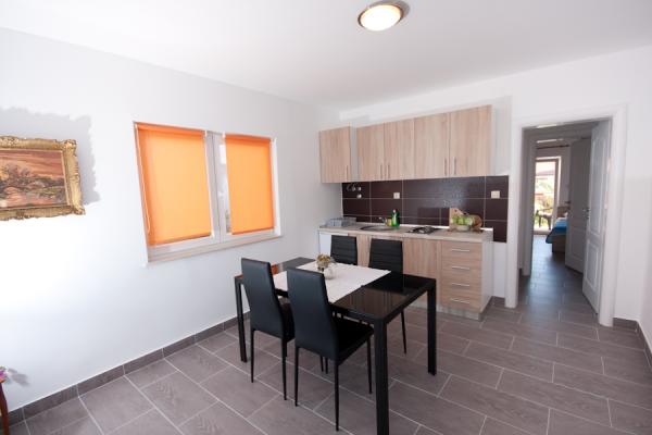 Apartmani su uređeni i veoma udobni. Nalaze se 1min hoda do plaže. Nalaze se 5 min hoda do centra. A1 apartman-velika terasa, kuhinja, kupatilo, dvije sobe, SAT-TV, WI-FI, parking, grill, potpuno opremljeni, klima uređaj, smješten na 3. katu A2-terasa, kuhinja, dvije sobe, Sat-tv, kupatilo, WI-FI, parking, grill, potpuno opremljen, na 3. katu