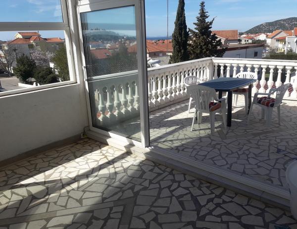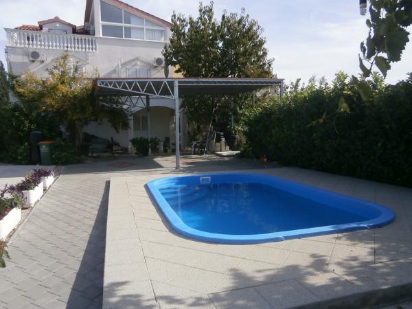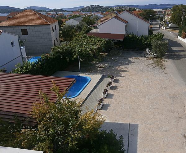 Opremljeni apartmani u obiteljskoj kući u Tribunju sa velikim parkingom i bazenom za korisnike objekta.