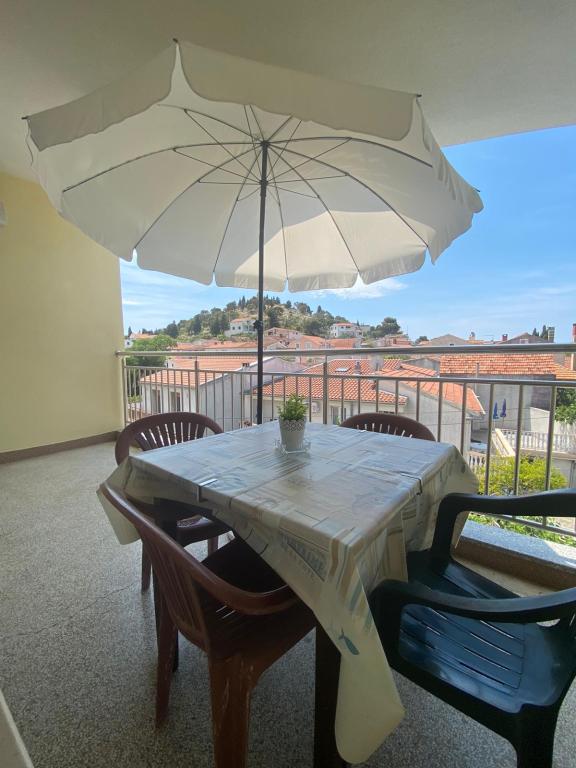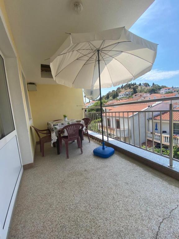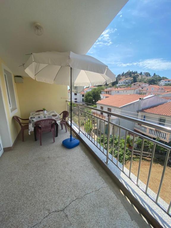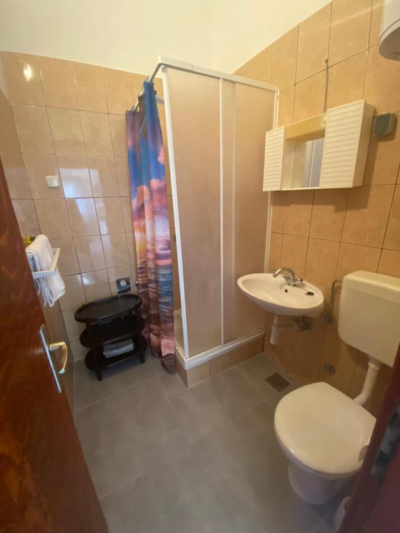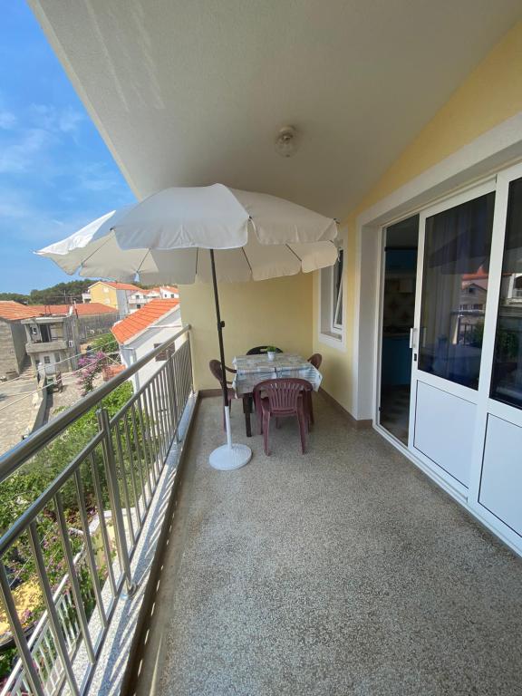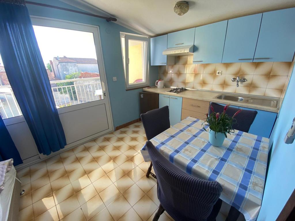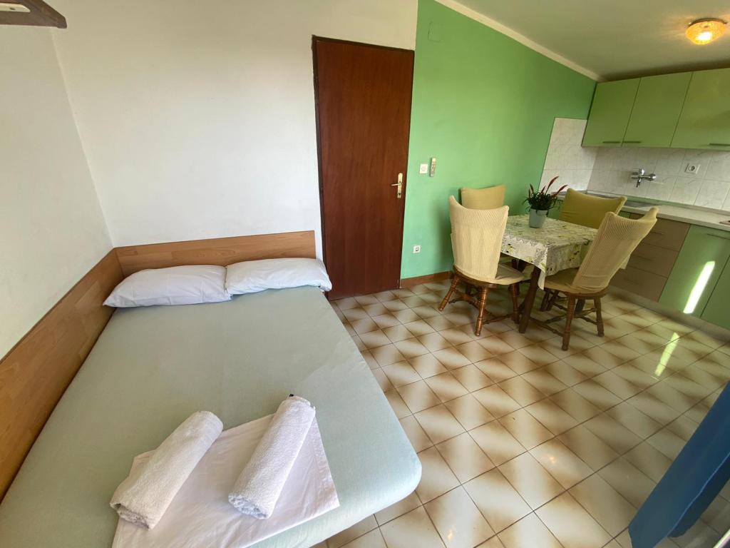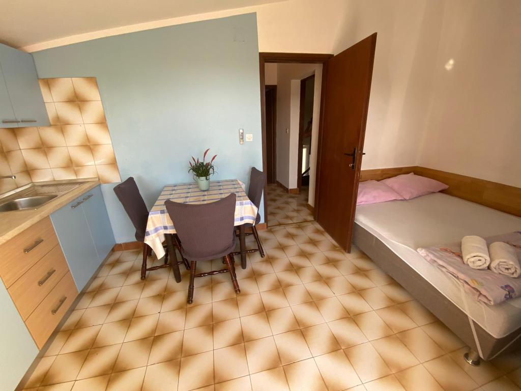 Objekt se nalazi 1 minuta hoda do plaže.Do centra 5 minuta hoda .