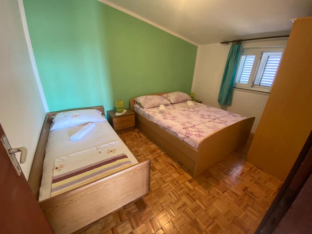 Apartmani se nalaze u obiteljskoj kuči mirnom predjelu Tribunja smješteni drugi red do mora.
