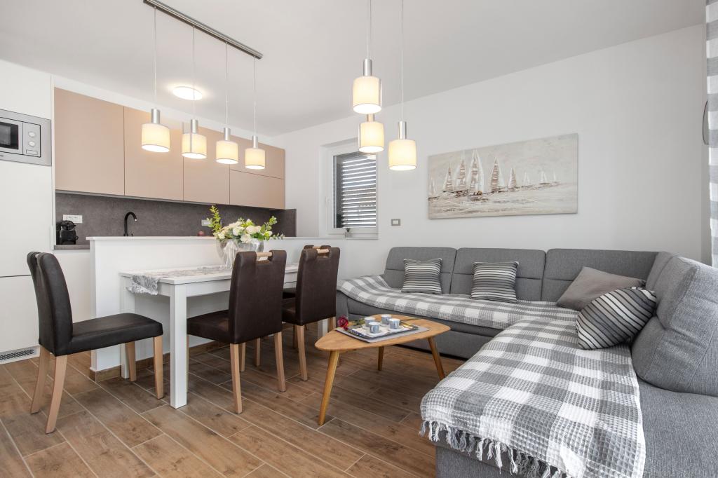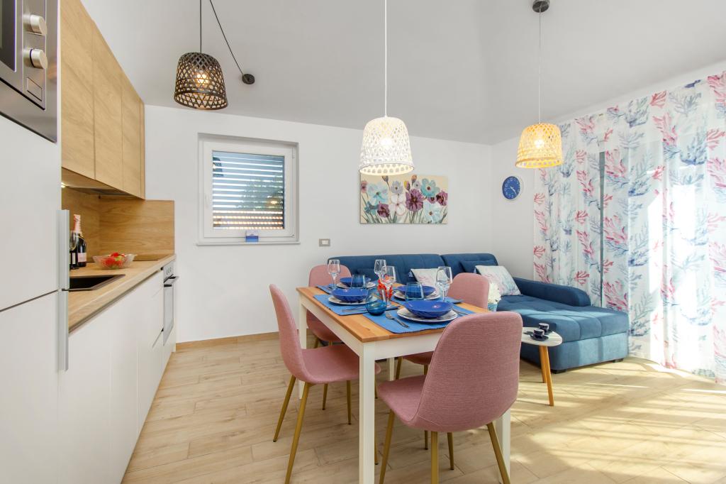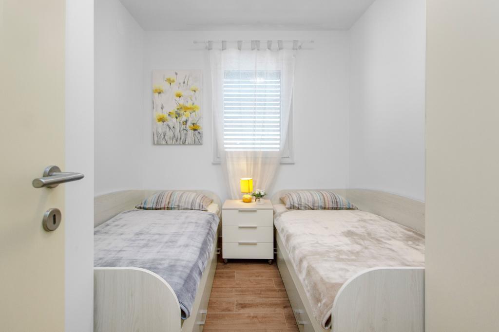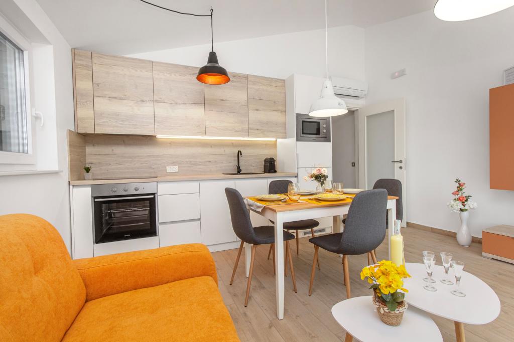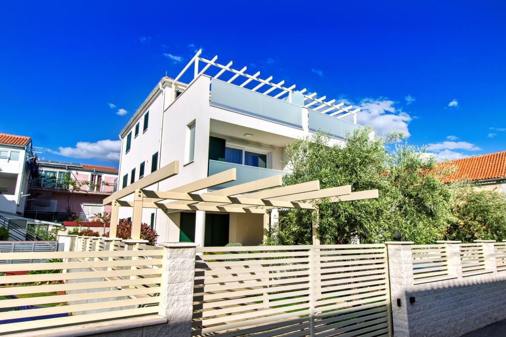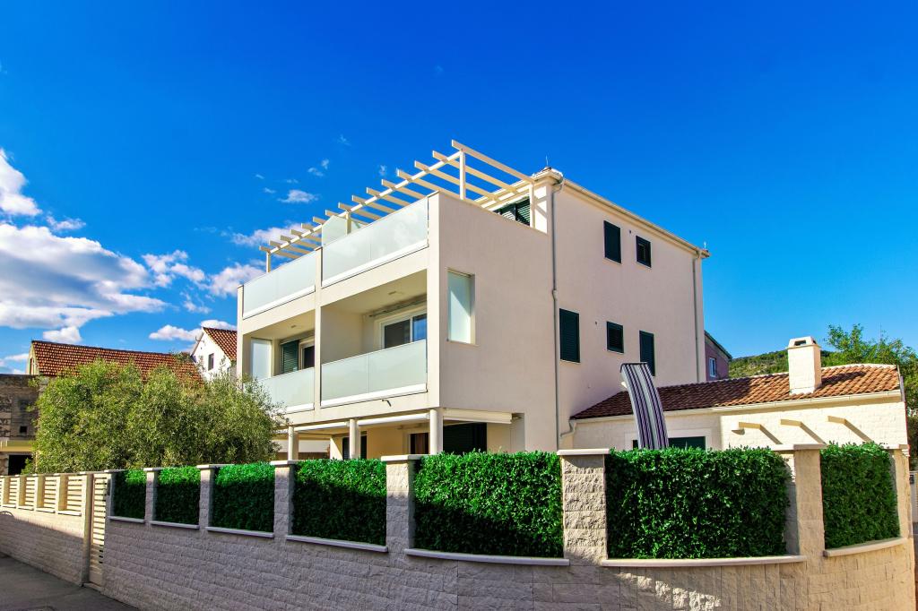 Objekt Three Olives je novogradnja te svoja vrata po prvi put otvara gostima od ljeta 2024.g. U dvorištu objekta nalaze se tri stare masline, drva tako tipičnog za hrvatsku obalu i otoke, iz čijih se plodova dobiva najkvalitetnije ulje, često nazivano "tekućim zlatom". Naziv Three Olives sugerira okruženje mira, spokoja i obilja. Apartmani u objektu jedinstveni su, moderno i potpuno funkcionalno opremljeni kako biste se osjećali ugodno, baš kao u svom domu! Objekt je odlično pozicioniran; smješten je 150m od mora te 200m od centra mjesta. U neposrednoj blizini nema velikih prometnica niti poslovnih sadržaja pa je mir gostima osiguran tijekom dana i noći. Ukratko, sve je spremno za Vaš potpuni odmor.