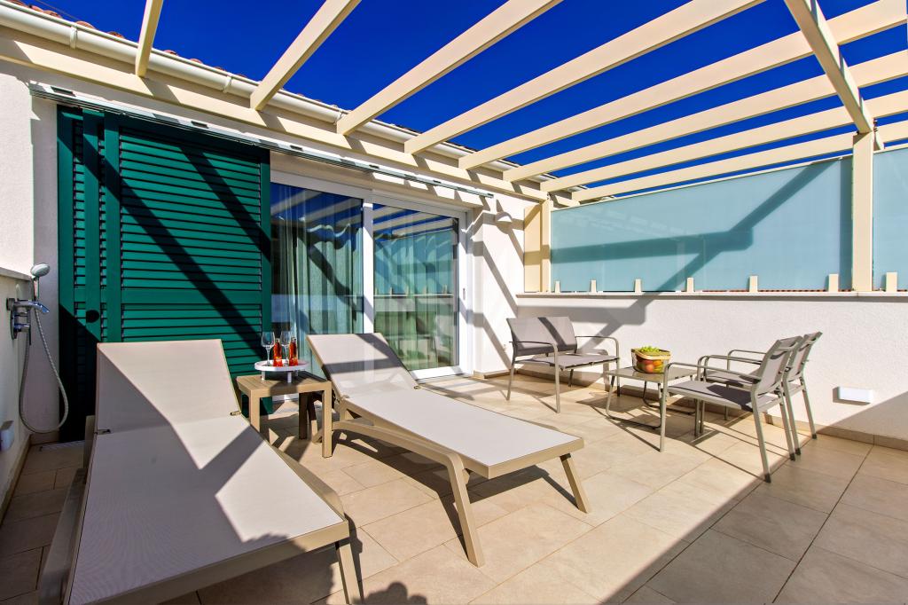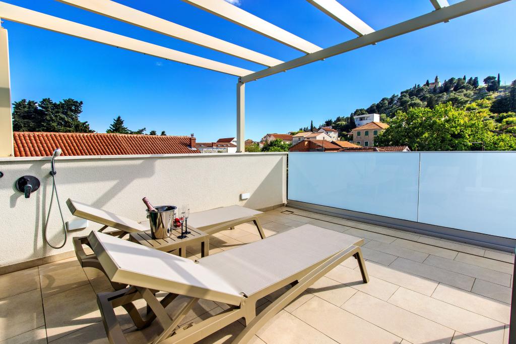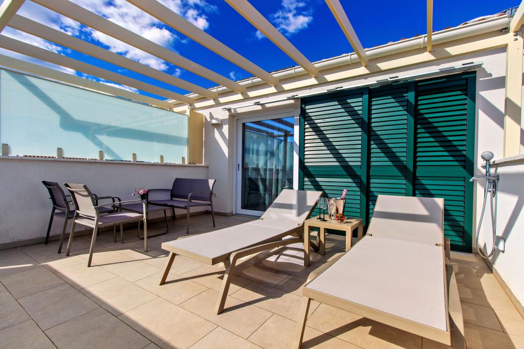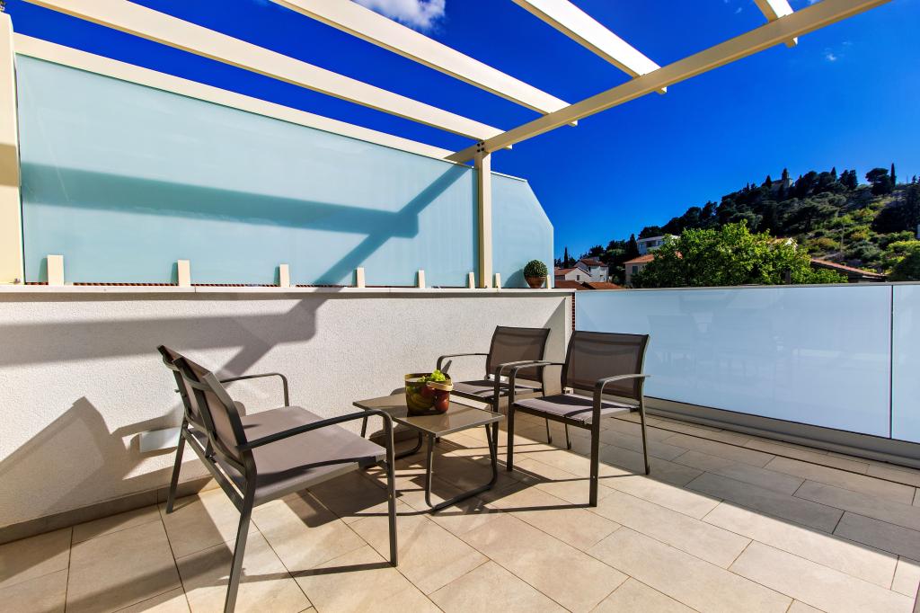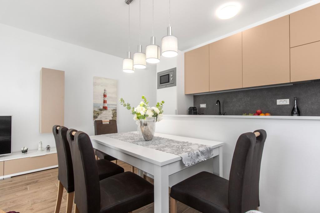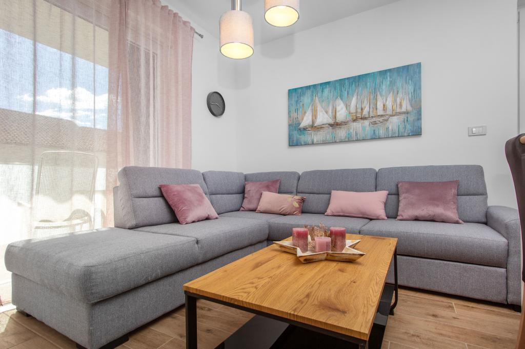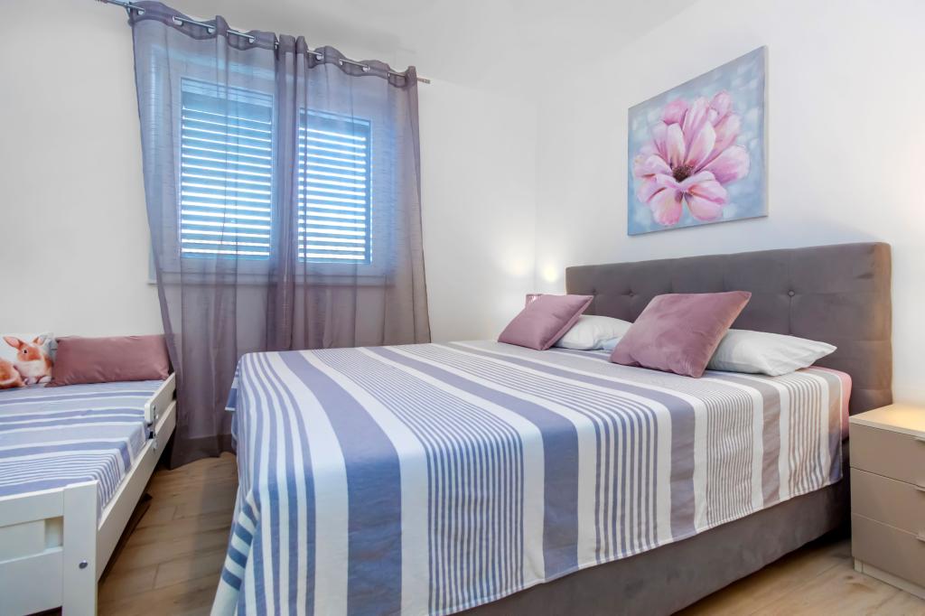 Objekt Three Olives je novogradnja te svoja vrata po prvi put otvara gostima od ljeta 2024.g. U dvorištu objekta nalaze se tri stare masline, drva tako tipičnog za hrvatsku obalu i otoke, iz čijih se plodova dobiva najkvalitetnije ulje, često nazivano "tekućim zlatom". Naziv Three Olives sugerira okruženje mira, spokoja i obilja. Apartmani u objektu jedinstveni su, moderno i potpuno funkcionalno opremljeni kako biste se osjećali ugodno, baš kao u svom domu! Objekt je odlično pozicioniran; smješten je 150m od mora te 200m od centra mjesta. U neposrednoj blizini nema velikih prometnica niti poslovnih sadržaja pa je mir gostima osiguran tijekom dana i noći. Ukratko, sve je spremno za Vaš potpuni odmor.