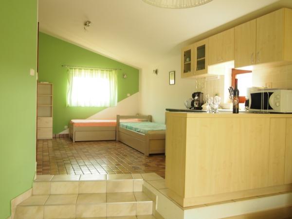 Naši apartmani nalaze se u obiteljskoj kući sagrađenoj 2006. u mirnoj ulici smještenoj u neposrednoj blizini centra mjesta Tribunj (oko 300m). Svi apartmani su uređeni modernim namještajem te opremljeni svim potrebnim uređajima. Možemo Vam ponuditi tri apartmana od kojih su dva smještena na prvom katu kuće sa prekrasnim pogledom na more a jedan se nalazi u prizemlju i idealan je za obitelji sa malom djecom koje žele koristiti dvorište. Svaki apartman ima osigurano parkirno mjesto u dvorištu a gostima je na raspolaganju i roštilj smješten u dvorištu kao i ljuljačke za djecu. Svi apartmani imaju: - besplatni neograničeni “wireless” pristup internetu - klima uređaj - mogućnost korištenja perilice za rublje - natkrivena terasa sa stolom i stolcima - dvorišni parking - boravišnu pristojbu uključeno u cijenu.