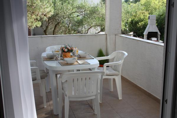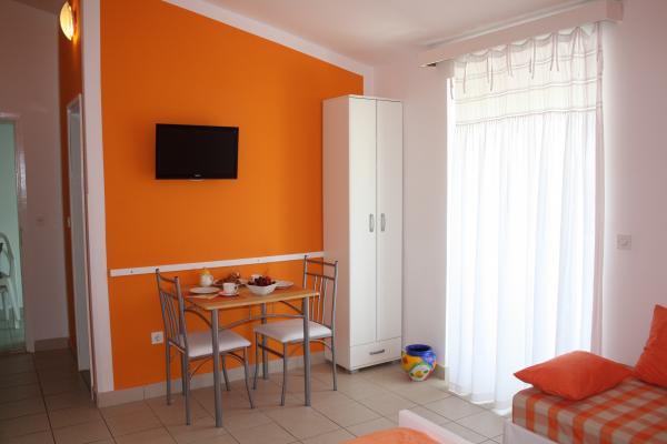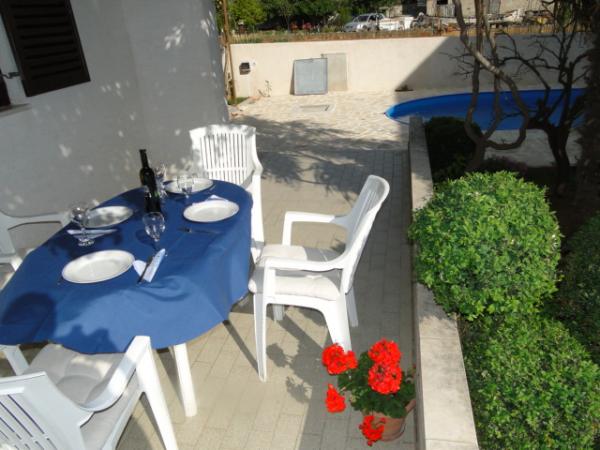 Apartmani ZADRO Apartmani se nalaze u centru mjesta, na 5 minuta hoda od centra i 10 minuta hoda od plaže. Smješteni su na mirnoj poziciji, okruženi zelenilom. U prizemlju se nalazi apartman sa dvije spavaće sobe i kuhinjom u kojoj je kut na izvlačenje, ispred je velika terasa za boravak na otvorenom.U dvorištu se nalazi bazen sa terasom za sunčanje, te terasa sa velikim stolom za sjedenje i druženje. Nedaleko se nalazi grill. Na drugom katu se nalaze 3 studio apartmana (klimatizirana) sa bračnim krevetom i krevetom za osobu, malom kuhinjom i kupaonicom. Apartmani imaju LCD televiziju, wi-fi. U drugoj kući koja se nalazi na izlazu iz Tribunja, u borovoj šumi nudimo vam i 6 apartmana svaki sa jednom spavaćom sobom za dvije osobe, velikom kuhinjom u kojoj je kauč na izvlačenje, te velikom terasom za zajednička druženja.