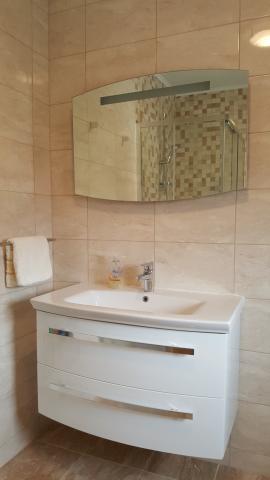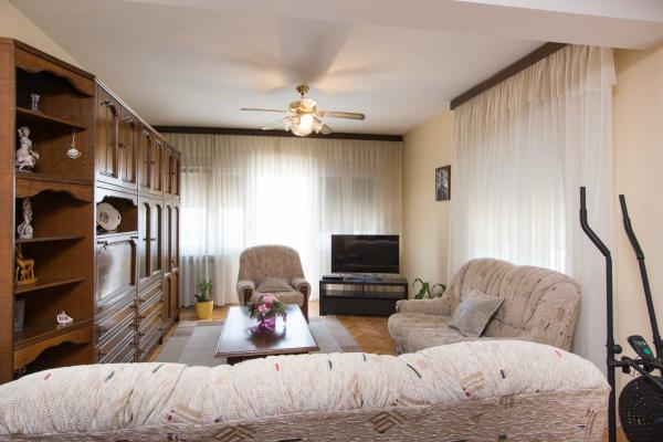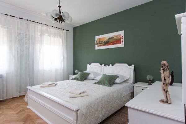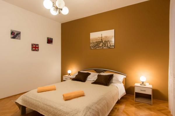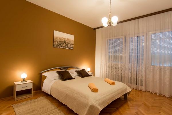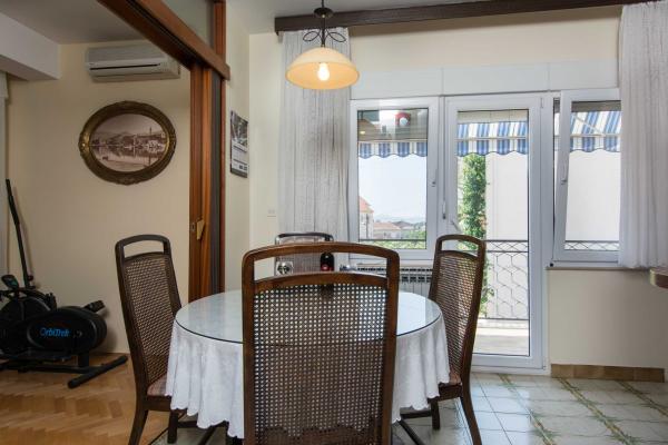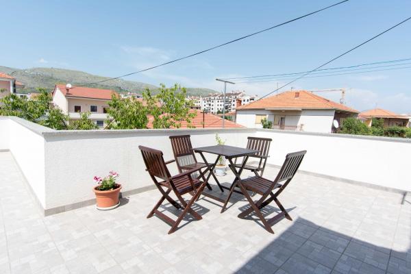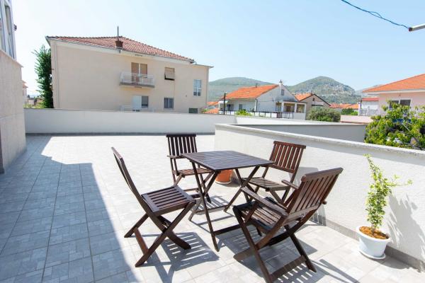 Apartman se nalazi u mirnom dijelu grada, na samom ulazu u Trogir sa zapadne strane. Stari grad je udaljen 800 metara ili 10 minuta hoda. Najbliži restoran je udaljen 100m, supermarket 300m, bankomat 300m. Do najbliže plaže je 1 kilometar, kao i do Marine Baotić. Zračna luka Split je udaljena 4 km. Objekt se nalazi prvom katu obiteljske kuće sa osiguranim parkingom za 2 vozila. Na ulazu u apartman je velika terasa. Apartman ima i veliki balkon sa južne i zapadne strane.