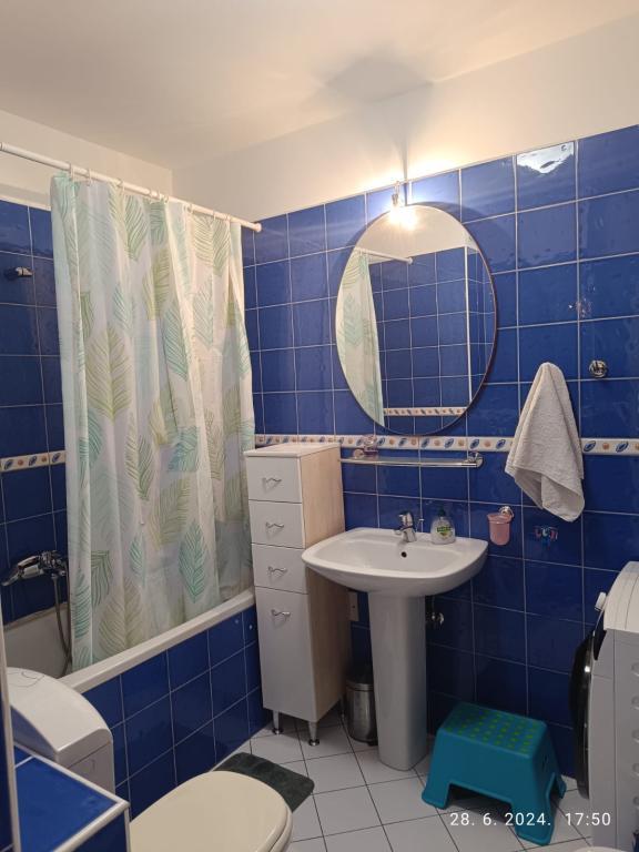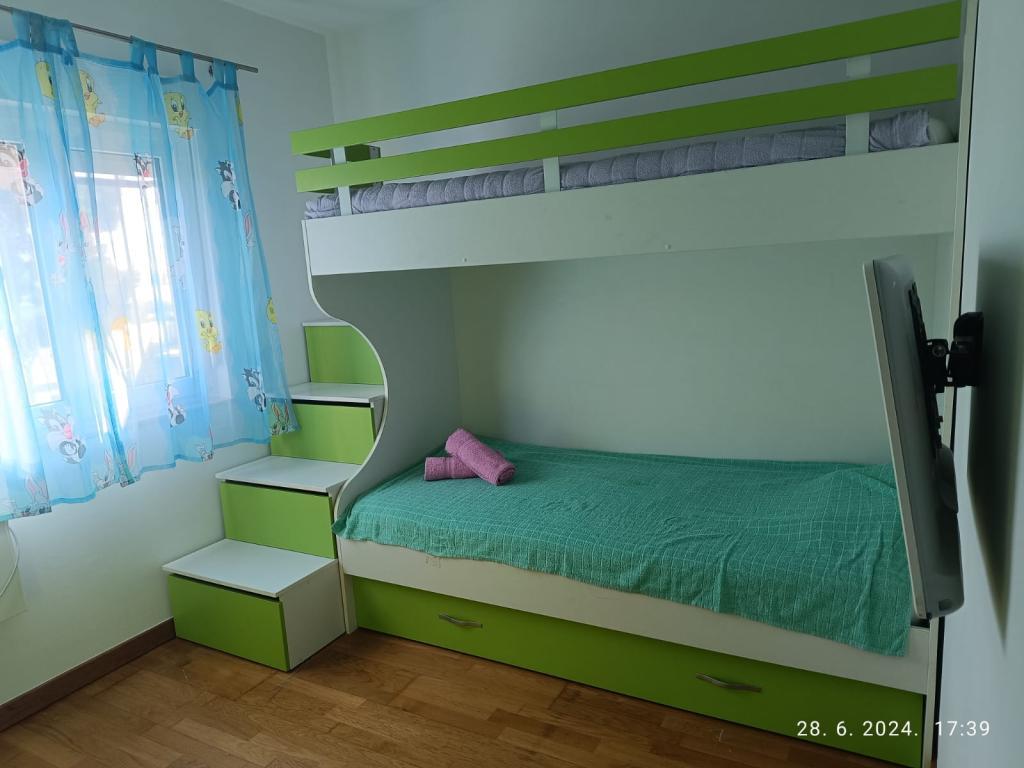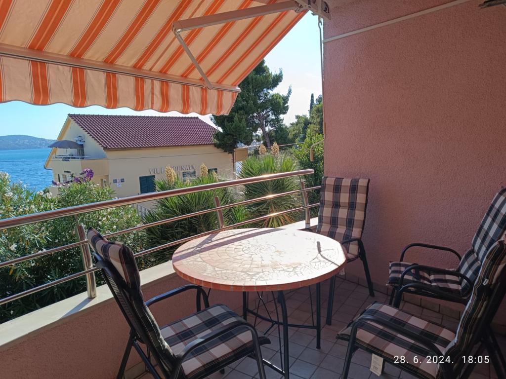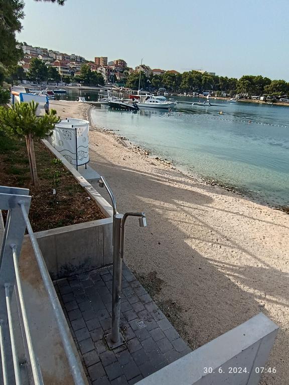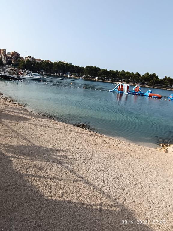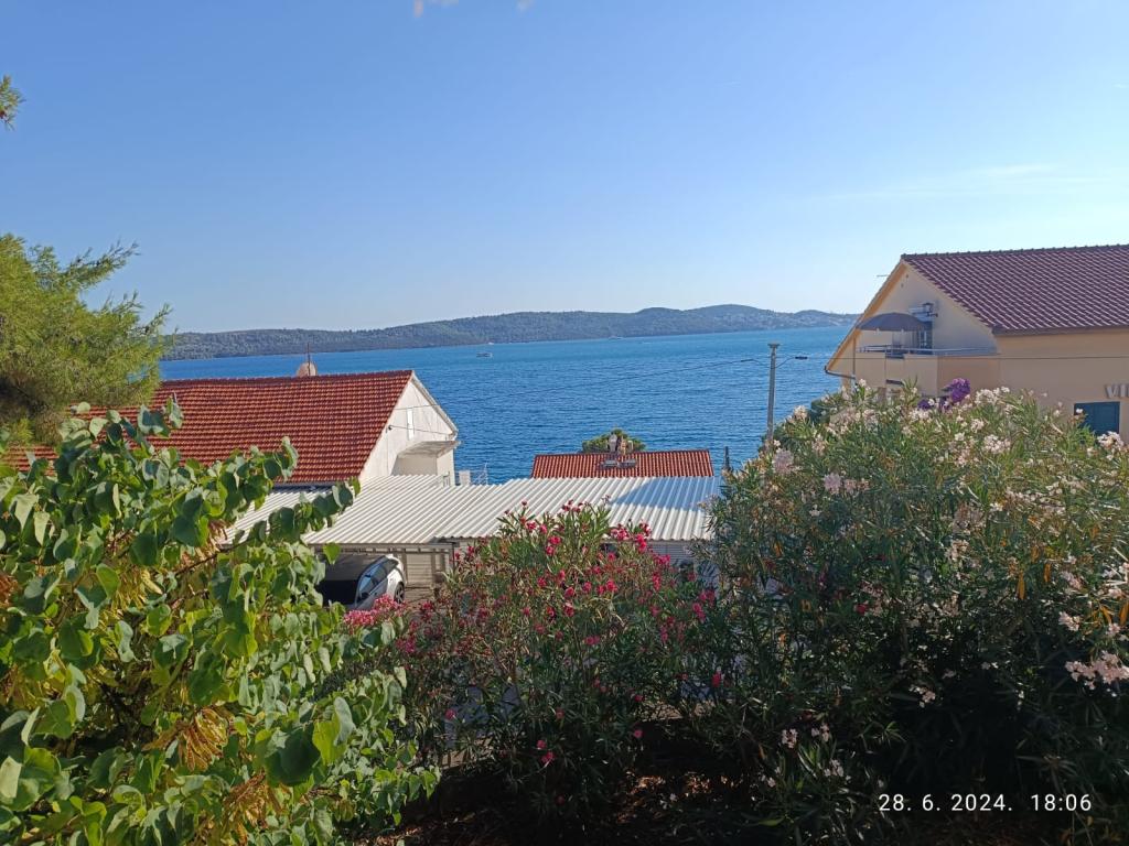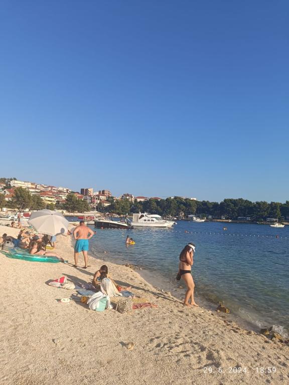 Apartman sa pogledom na more. Bračna spavača soba Djećja spavaća soba sa krevetom na kat i pomocnim lezajem. Dnevni boravak lezaj za dvije odrasle osobe. Plinski roštilj . Udaljenost od grada Trogira -Stare gradske jezgre - 500 m Udaljenost od plaže - 200 m