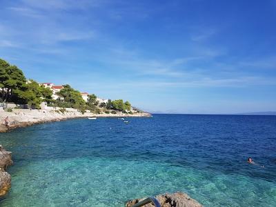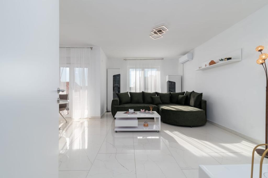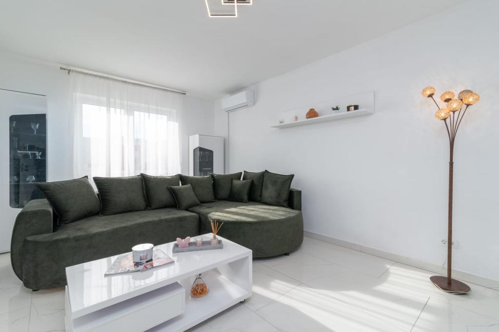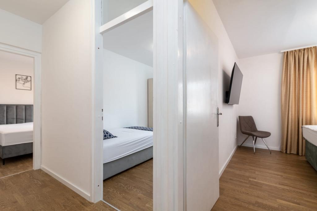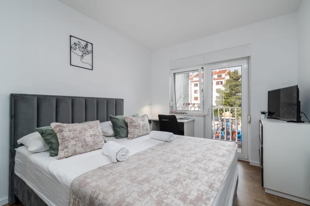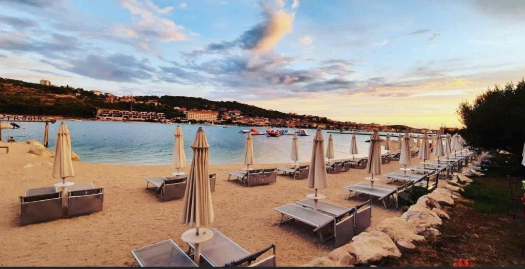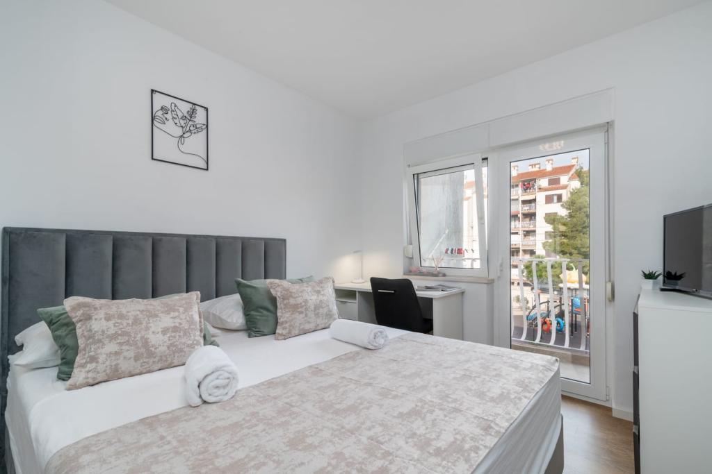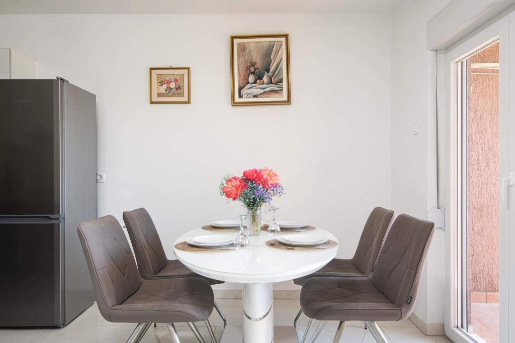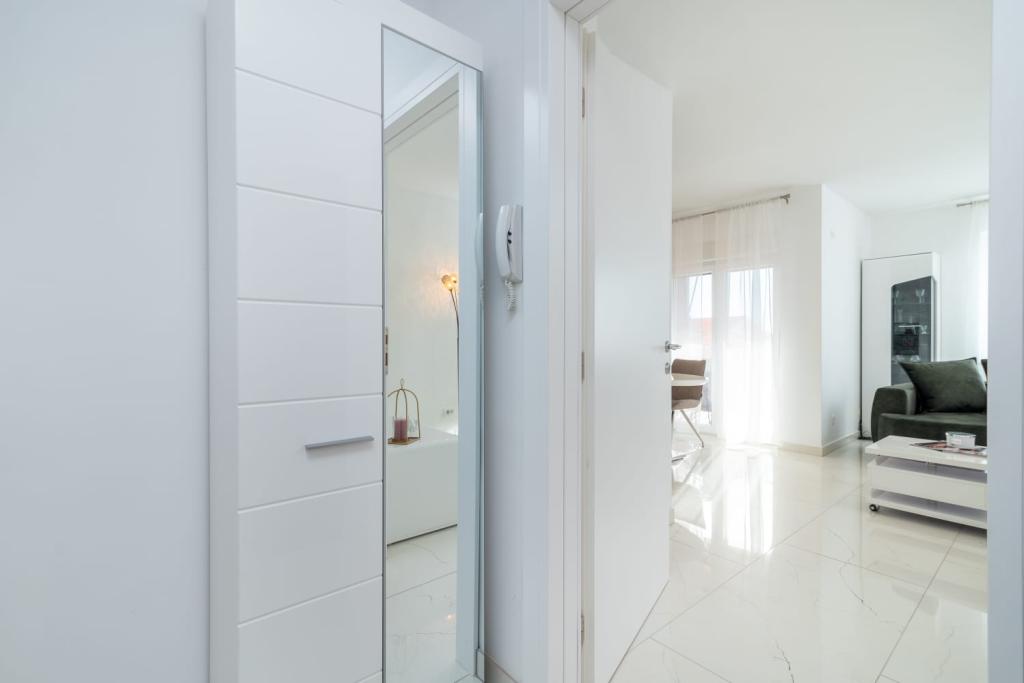 Uživajte u kompletno moderno opremljenom apartmanu, samo 10 minuta hoda od starog grada Trogira. Smješten je u mirnom dijelu grada. Apartman može primiti do 7 osoba. Nalazi se na drugom katu. Sastoji se od 3 spavaće sobe, kupaonice, wc-a, dnevnog boravka, potpuno opremljene kuhinje, dnevnog boravka, te dva balkona. Svaka soba ima televiziju s mogućnošću gledanja Netflix. Posteljina i ručnici su dostupni u apartmanu. Parking je omogućen u garaži centra Marisa koji se nalazi pored apartmana, bez dodatnih plaćanja. Plaže su udaljene 1.3 km od apartmana. Zračna luka Split udaljena je 4.5 km od apartmana. Apartman je opremljen pametnom bravom.