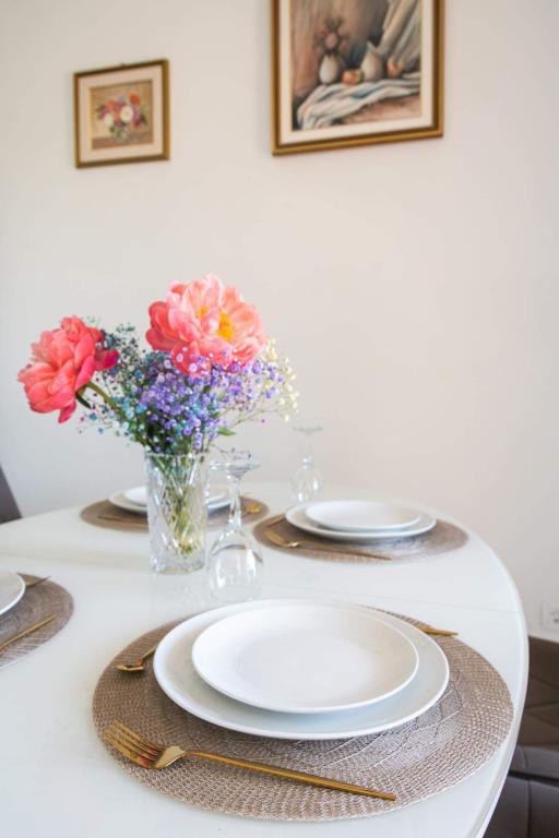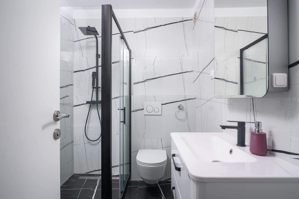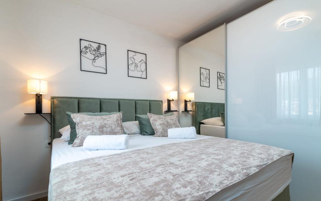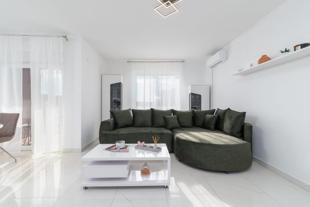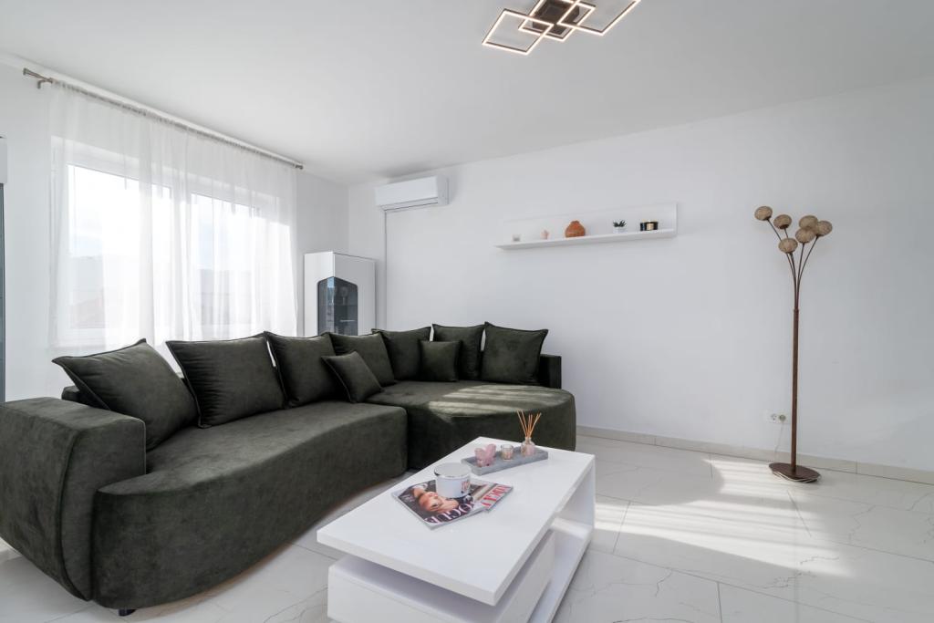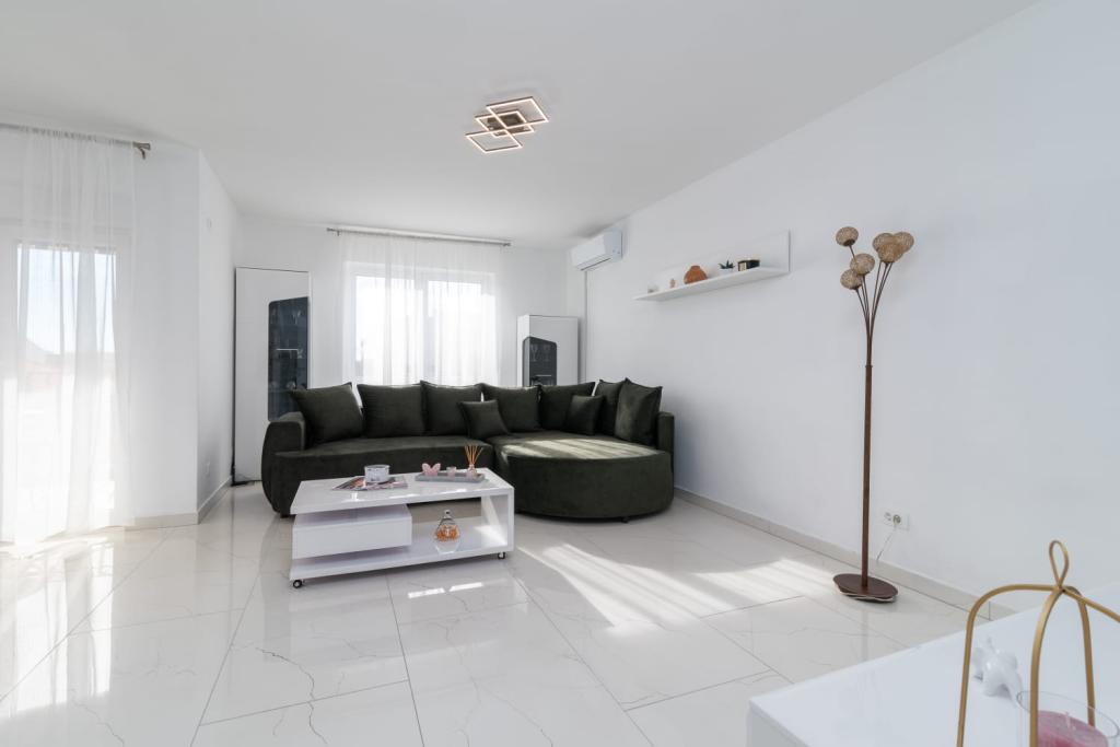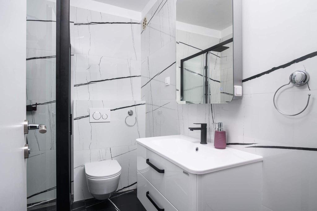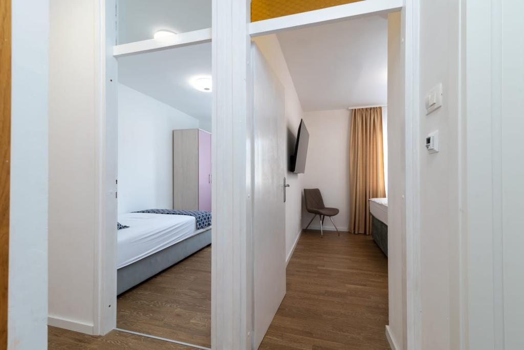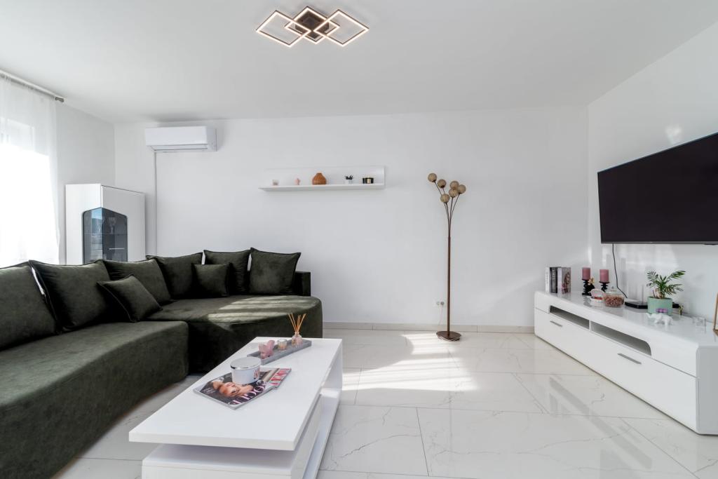 Uživajte u kompletno moderno opremljenom apartmanu, samo 10 minuta hoda od starog grada Trogira. Smješten je u mirnom dijelu grada. Apartman može primiti do 7 osoba. Nalazi se na drugom katu. Sastoji se od 3 spavaće sobe, kupaonice, wc-a, dnevnog boravka, potpuno opremljene kuhinje, dnevnog boravka, te dva balkona. Svaka soba ima televiziju s mogućnošću gledanja Netflix. Posteljina i ručnici su dostupni u apartmanu. Parking je omogućen u garaži centra Marisa koji se nalazi pored apartmana, bez dodatnih plaćanja. Plaže su udaljene 1.3 km od apartmana. Zračna luka Split udaljena je 4.5 km od apartmana. Apartman je opremljen pametnom bravom.